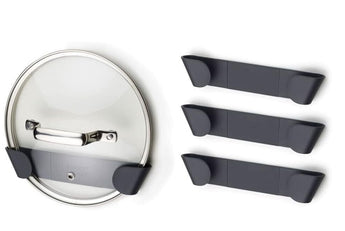 Denna praktiska skåpdörrsorganisatör är utformad för att hålla dina grytlock prydliga och lättillgängliga. Genom att utnyttja det ofta förbisedda utrymmet på insidan av dina skåpdörrar kan du frigöra värdefull hyllplats i dina köksskåp. Systemet hjälper till att förhindra att locken blir röriga eller tar upp onödig plats. Det säkerställer att dina grytlock förvaras säkert och ligger nära till hands när du behöver dem. En enkel lösning för en mer organiserad köksmiljö.