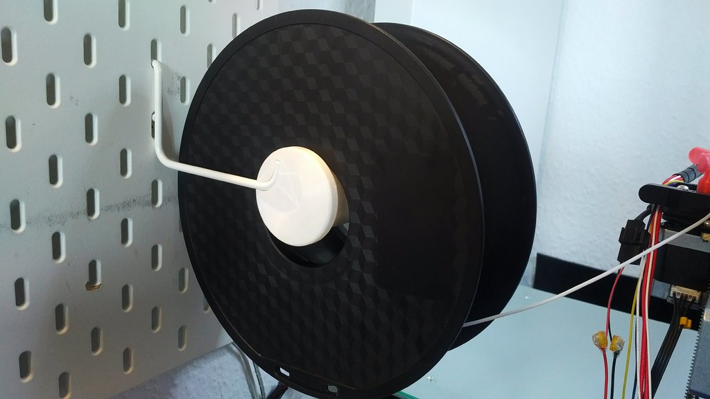 Detta är en SKÅDIS trådrullhållare för krokar. Detta gör det enklare att hantera dina spolar på din SKÅDIS pinnbräda. Produkten hjälper till att hålla din arbetsyta organiserad och gör det lättare att nå dina filamentspolar.