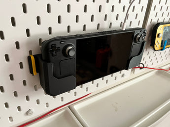 Skådis - Steam Deck Holder är en praktisk lösning för att säkert fästa ditt Steam Deck på Ikea Skådis pegboard-system. Den här hållaren är designad för att skydda din enhet från oavsiktliga fall samtidigt som du håller ditt spelområde snyggt och organiserat.