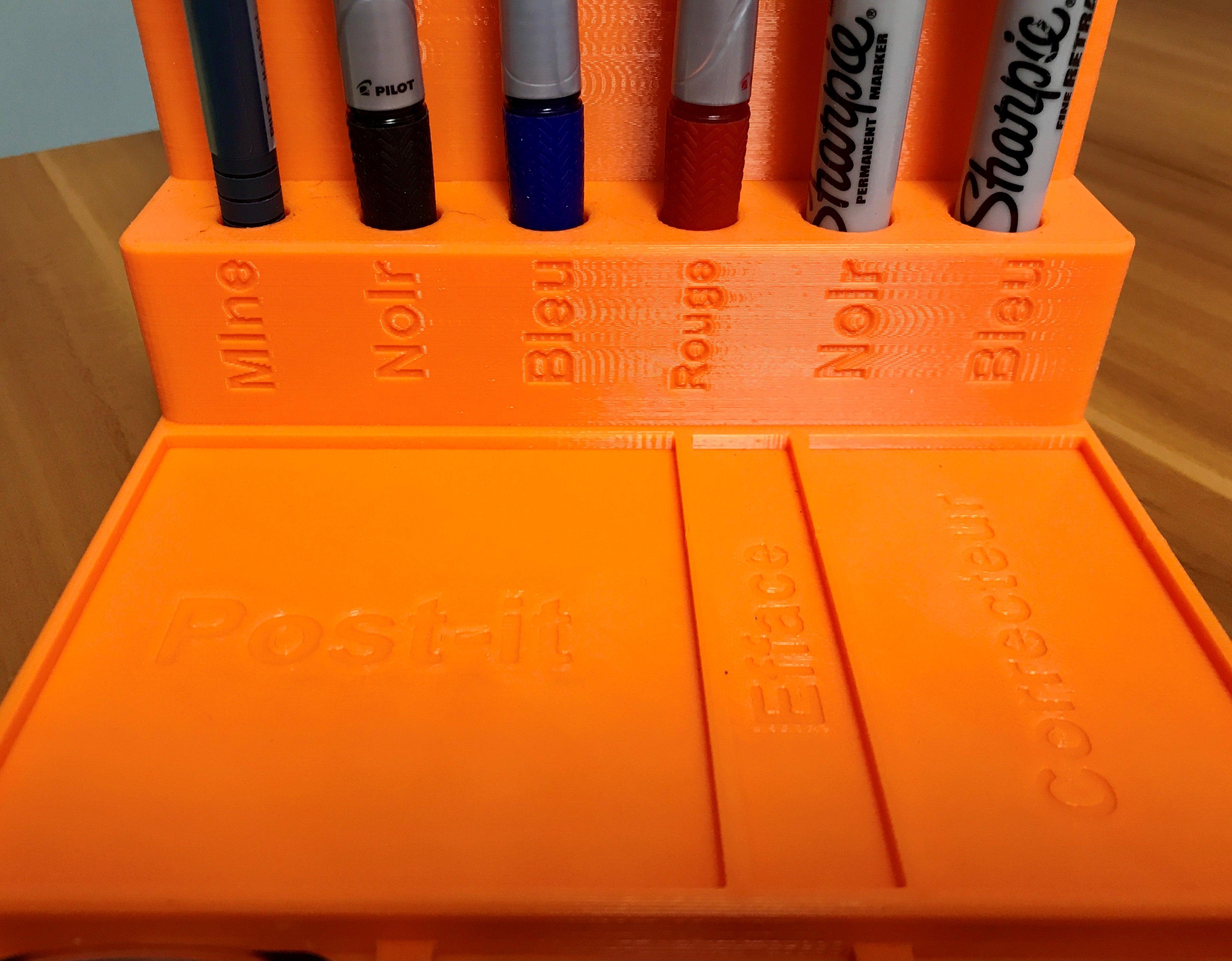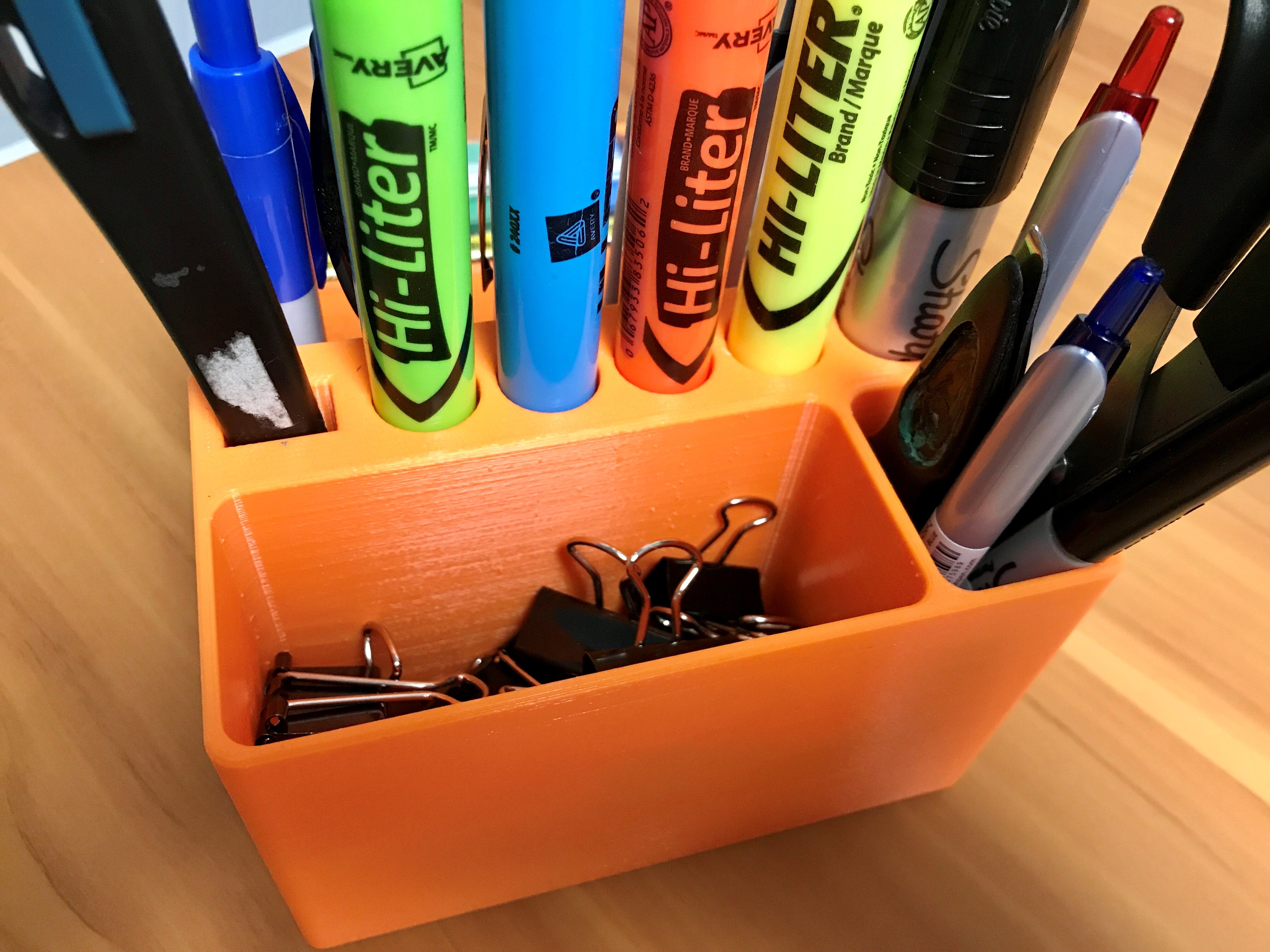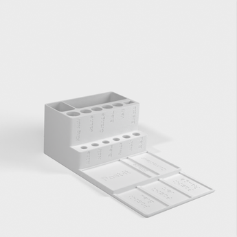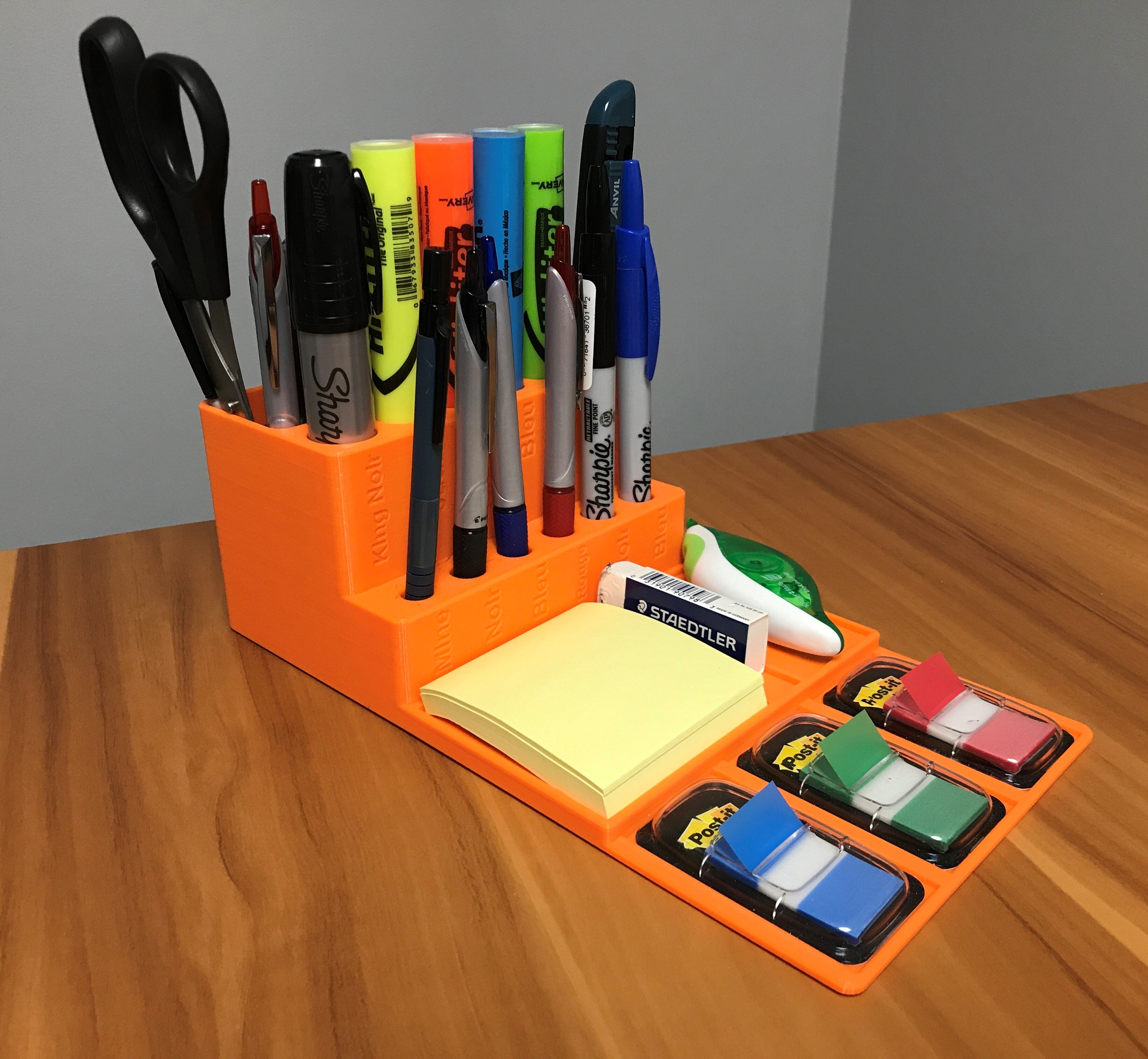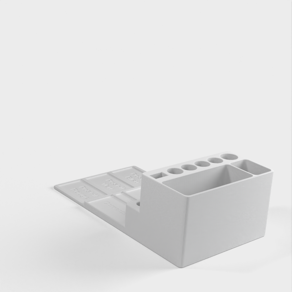 Detta är en skrivbordsarrangör designad för att effektivt organisera dina dagliga kontorsverktyg. Denna arrangör underlättar förvaring av olika verktyg såsom pennor, pennor, markörer och andra skrivartiklar som är nödvändiga för daglig användning på kontoret. Håll ditt skrivbord snyggt och städat och öka din produktivitet genom att hålla dina kontorsverktyg inom räckhåll.