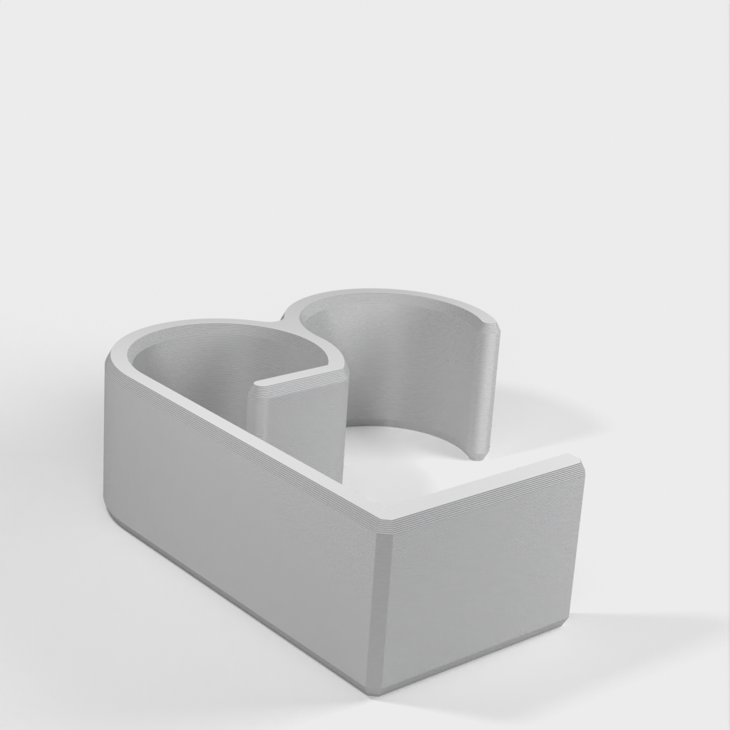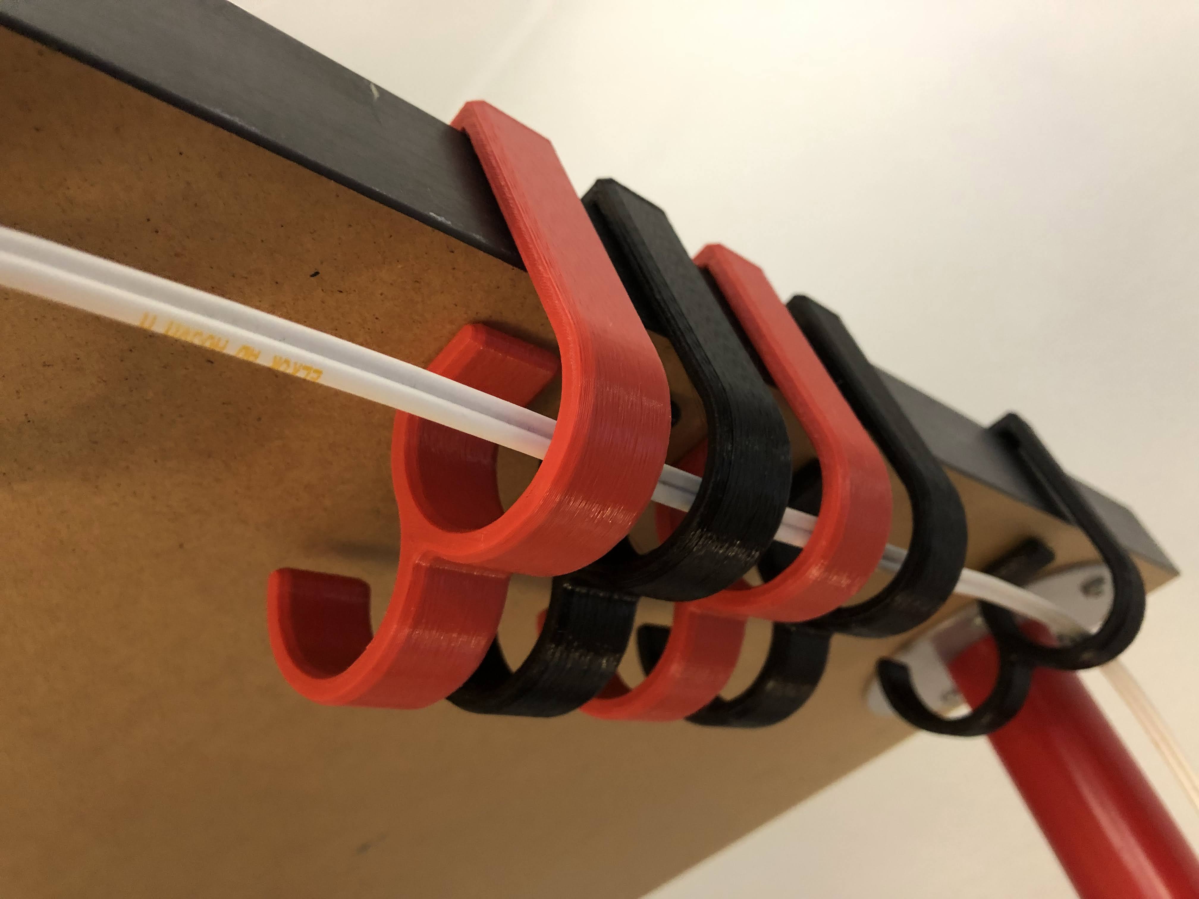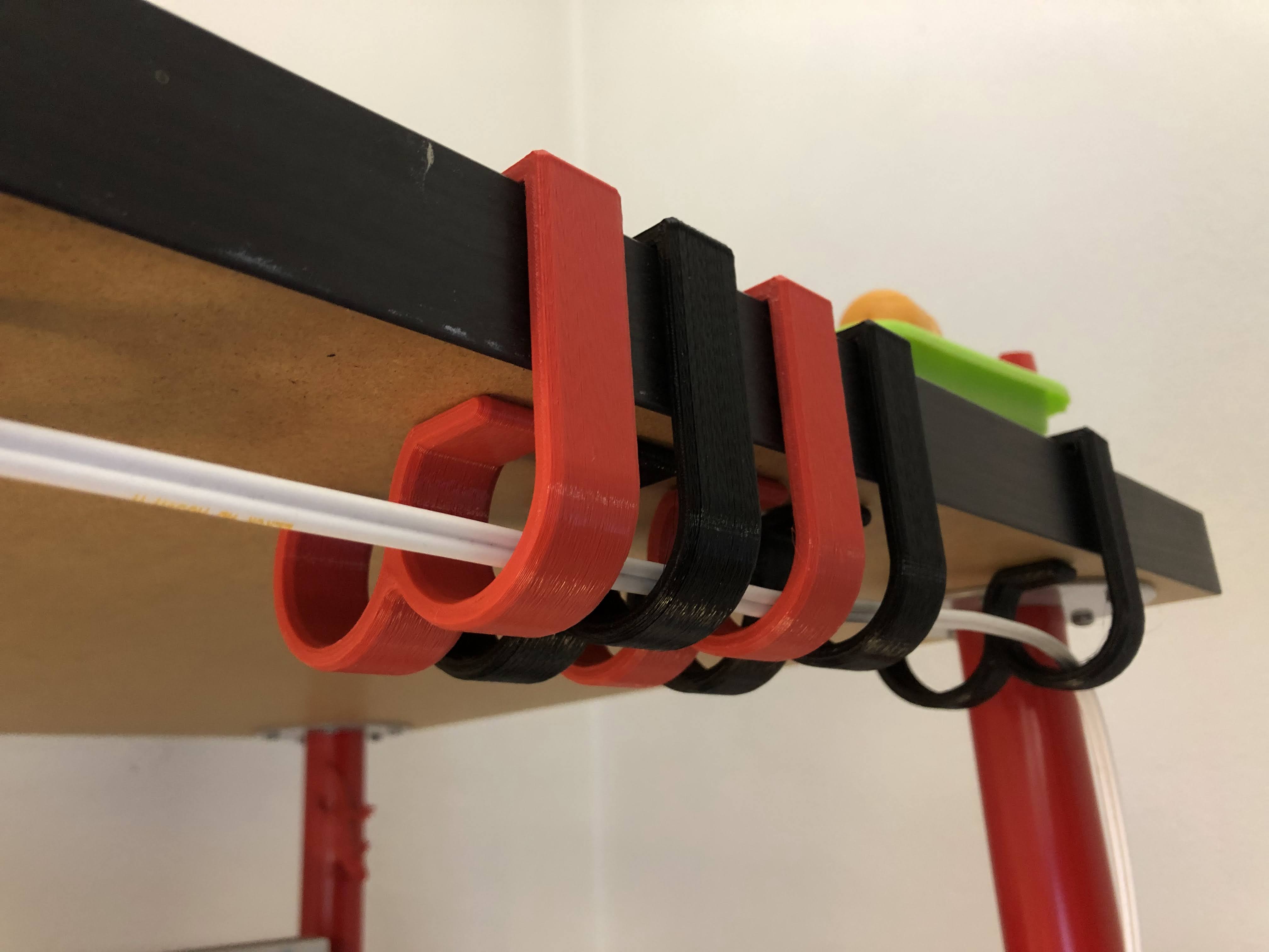 En uppsättning modeller som hjälper dig med din kabelhantering. Dessa klämmor är designade för att fästa på skrivbord eller bord. Klämmorna är ursprungligen gjorda för Ikea Linnmon bordsskivor, men är fullt kompatibla med Lagkapten och Målvakt bordsskivor, samt andra bordsskivor eller skrivbord som är 50 mm (~2") tjocka. Den ena modellen har en sluten ring när den är monterad, medan den andra modellen har en extra delvis öppen ring som gör det enkelt att lägga till eller ta bort trådar i farten. Båda modellerna finns i 20 mm och 30 mm bredder, men andra bredder kan enkelt göras genom att ändra storlek i ditt klippprogram.