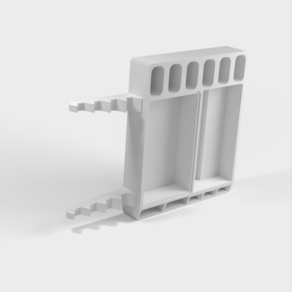 Skrivbordsorganisator designad för att hålla ditt skrivbord snyggt och organiserat. Det finns plats för markörer, USB-minnen och kort. Dessutom har det tillkommit ett litet fack för diverse småsaker som clips, resår med mera. Denna arrangör är idealisk för att skapa ordning på din arbetsplats.