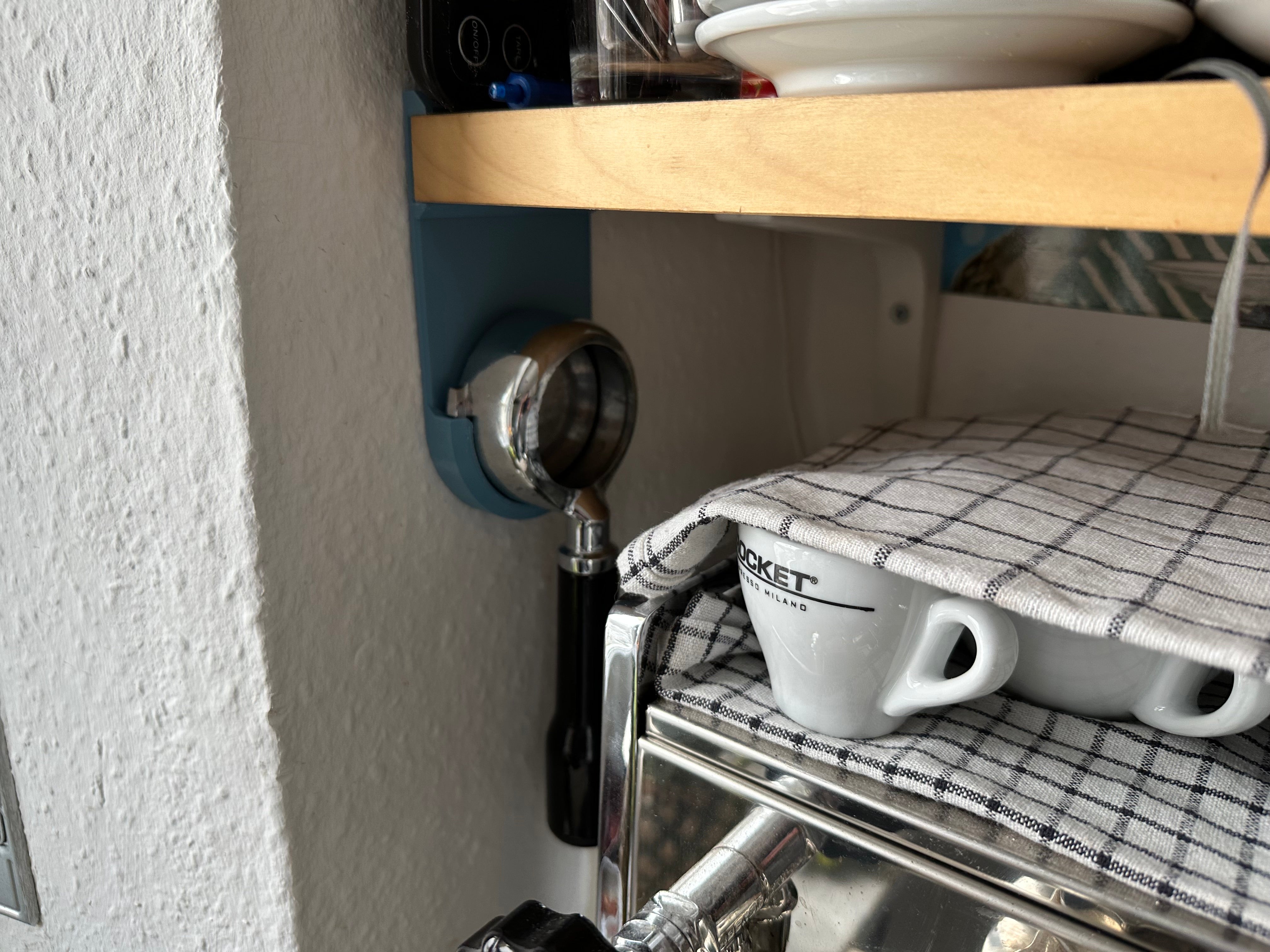 Denna skruvlösa filterhållare erbjuder en praktisk lösning för förvaring av dina filterhållare. Hållaren är speciellt utformad för Rocket Mozzafiato filterhållare och låter dig hänga dina espressotillbehör diskret under en hylla, vilket frigör värdefullt bänkutrymme i köket. Som ett idealiskt Rocket Espresso-tillbehör möjliggör den organiserad förvaring av dina Rocket Espresso filterhållare. Den enkla och funktionella designen gör att flera hållare kan placeras sida vid sida för en effektiv kaffeuppsättning.