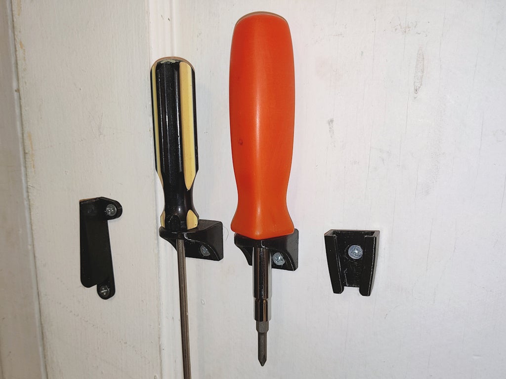 Detta är ett enkelt väggfäste för skruvmejslar. Den kan monteras med två #8 eller #6 försänkta skruvar. Det krävs inga stöd.