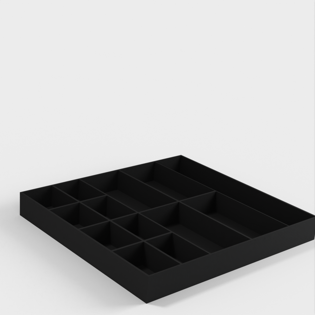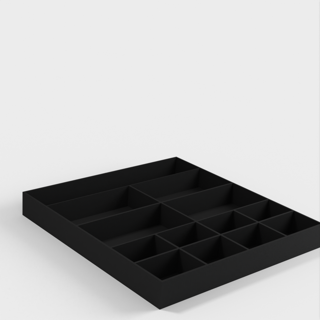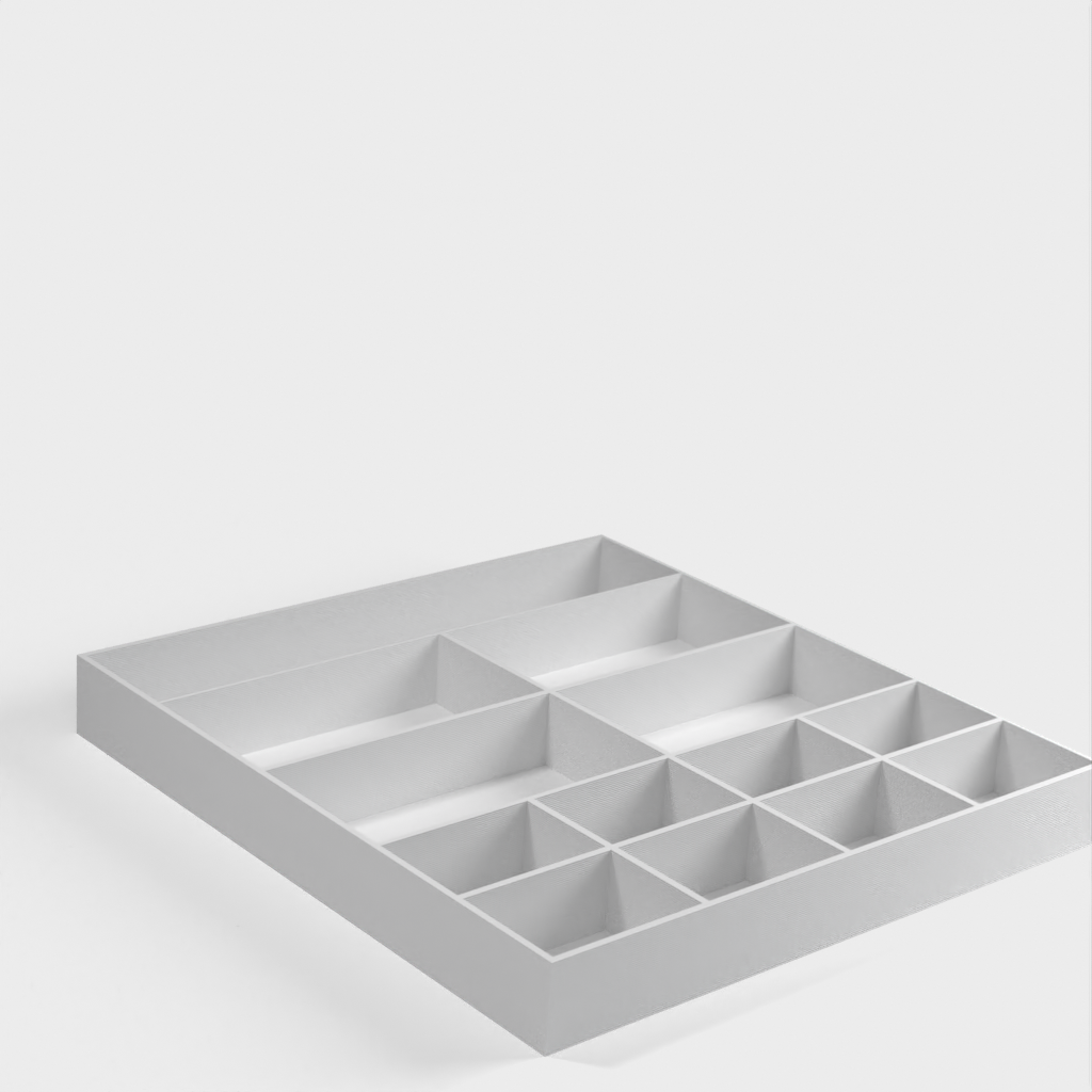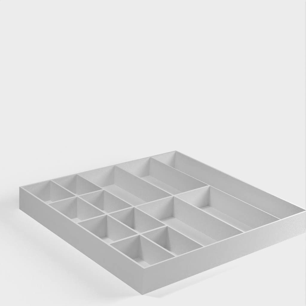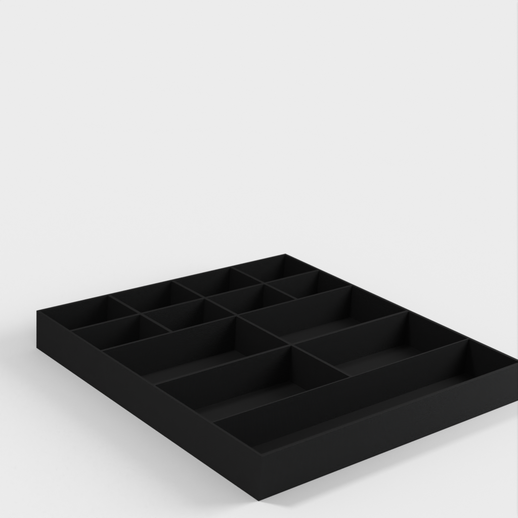 Detta är en lådorganisator designad speciellt för lådor. Det hjälper till att skapa ordning och struktur i dina lådor genom att separera och organisera innehållet på ett tydligt och effektivt sätt. Håll din låda snygg och välorganiserad med denna praktiska byrålåda.