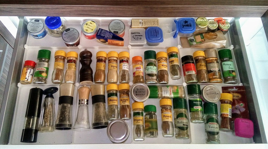 Enkelt organisationssystem för lådor. Detta system använder hörn L-fogar, T-fogar på utvändiga sidor och tvärfogar för inre noder. Skriv ut de nödvändiga partitionerna och anslut dem genom att skära av anslutningsdelarna ovanifrån. Om du behöver högre partitioner kan du helt enkelt skala både partitioner och anslutningar i samma förhållande i Z-riktningen.