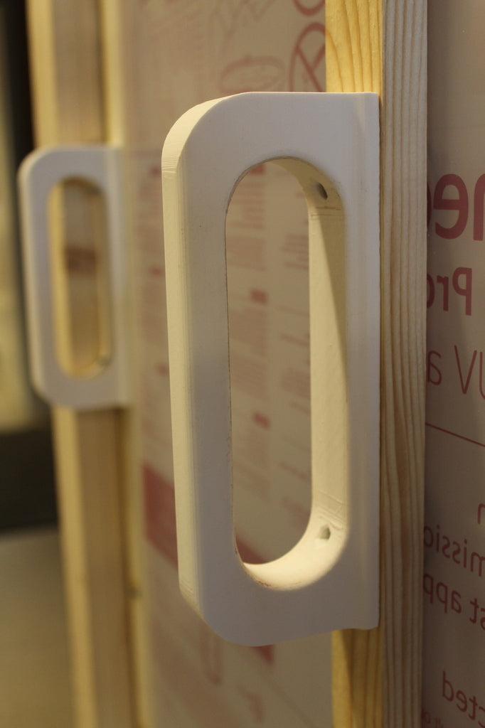 Skjutdörrshandtag designade för att passa 3D-skrivarbehållare. De är kompatibla med M3 skruvar och muttrar. Designade av Dirk Feyerabend, dessa handtag är idealiska för att omorganisera din verkstad eller makerspace, vilket bidrar till förbättrad åtkomst och användarvänlighet.