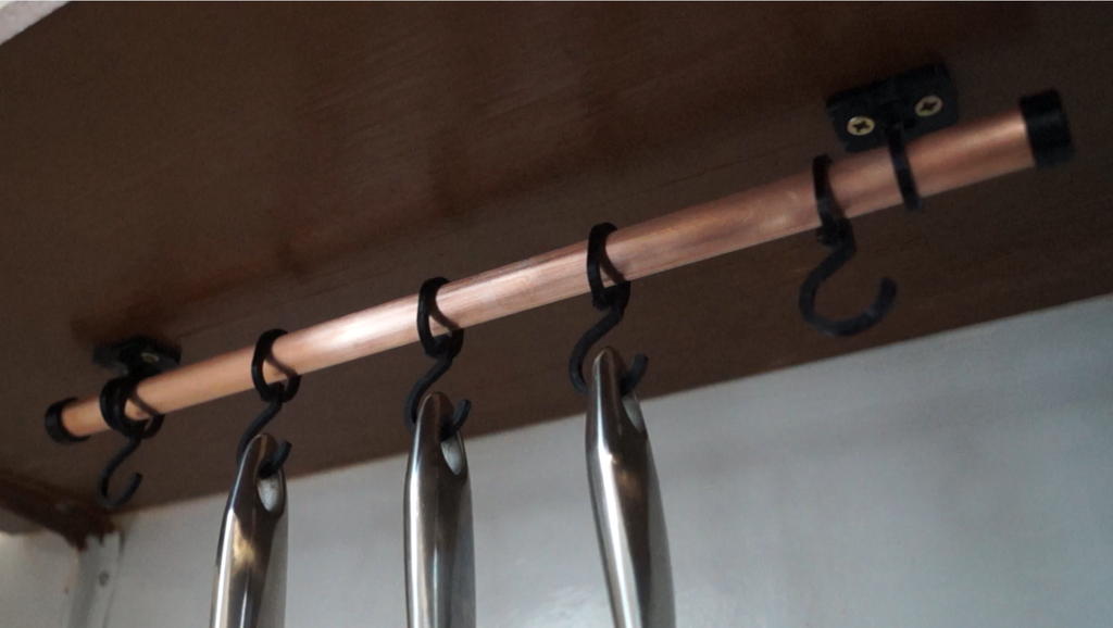 Detta praktiska köksställ är utformat för att ge dig en smart lösning för förvaring av dina köksredskap. Med detta kastrullställ kan du enkelt organisera dina kastruller och stekpannor, vilket frigör värdefullt skåp- och bänkutrymme i ditt kök. Stället är utformat för att passa runt ett 16 mm eller 1/2" kopparrör, vilket säkerställer ett stabilt och robust fäste. Det är den perfekta platsbesparande lösningen för att hålla ditt kök snyggt och alla dina köksredskap inom räckhåll.