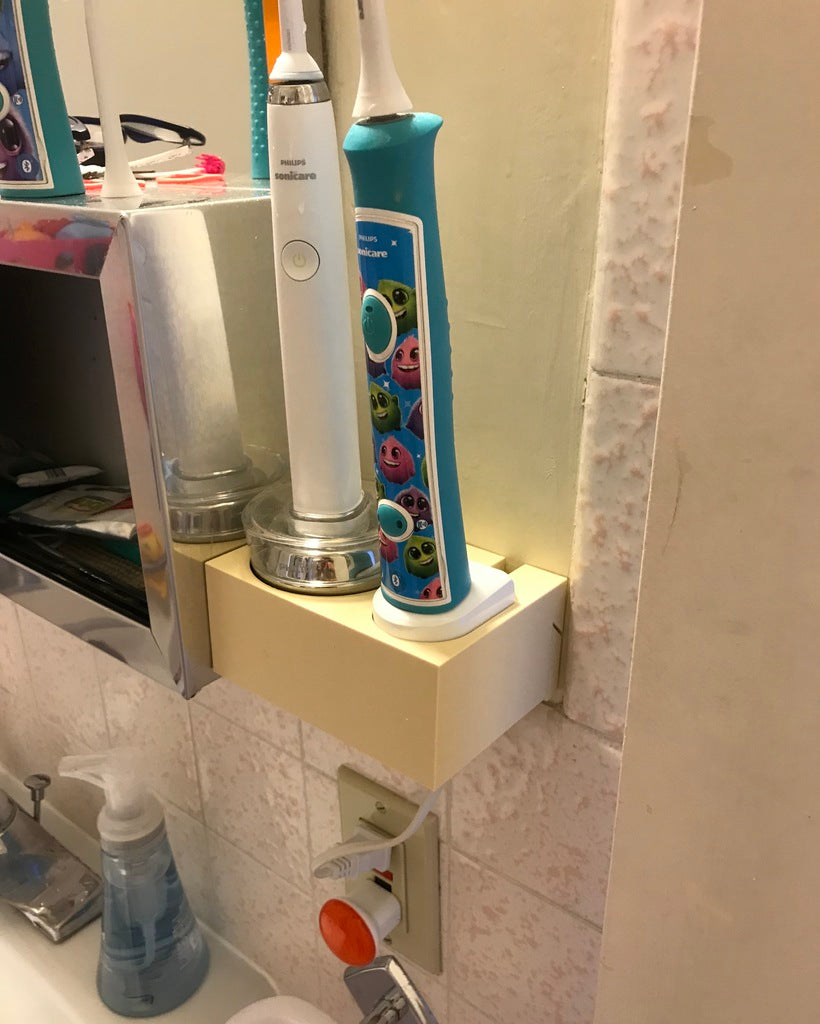 - Platsbesparande design: Monterar Sonicare-laddaren direkt ovanför eluttaget.