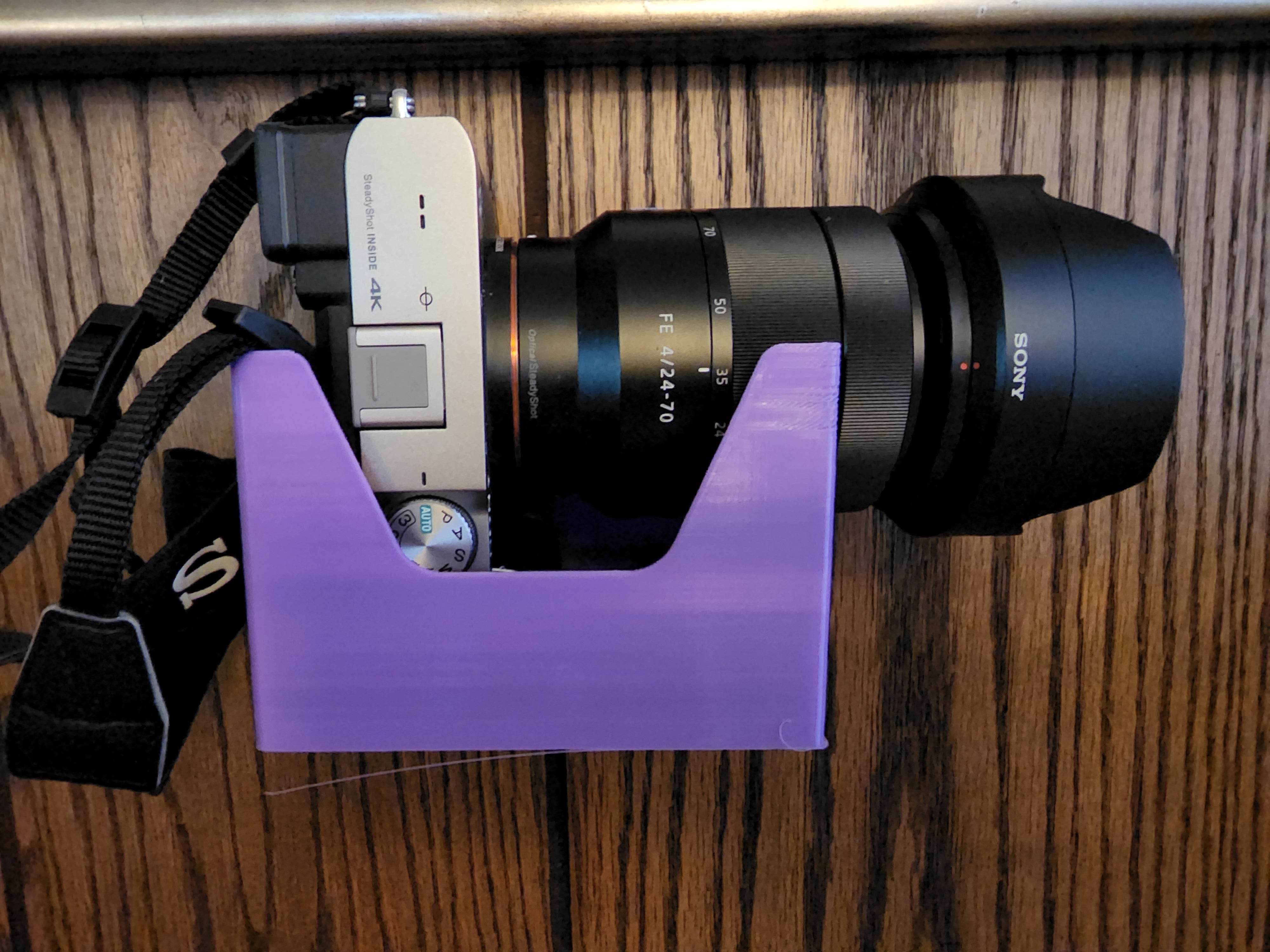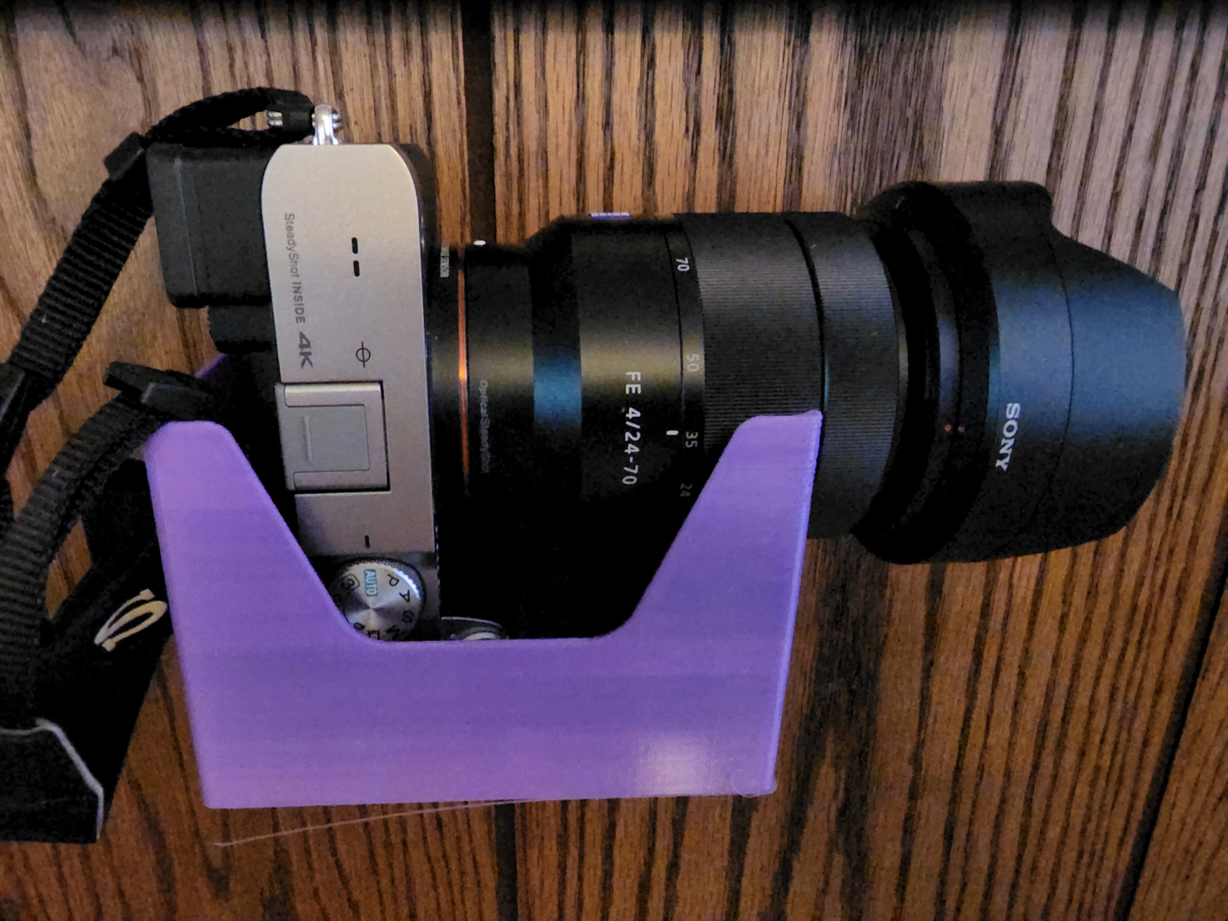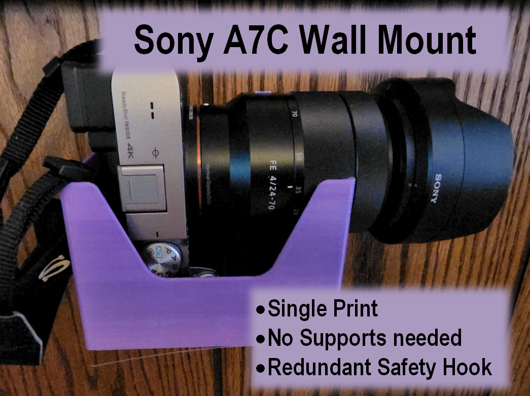 Detta är ett enkelt väggfäste för din Sony A7C-kamera (och förmodligen andra modeller). Det hjälper till att hålla kameran utom räckhåll för små barn och gör den praktisk för spontana fototillfällen.