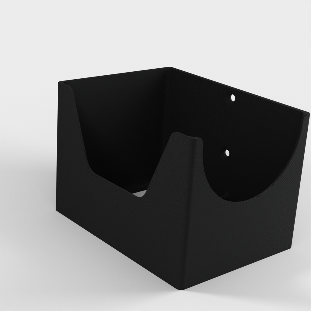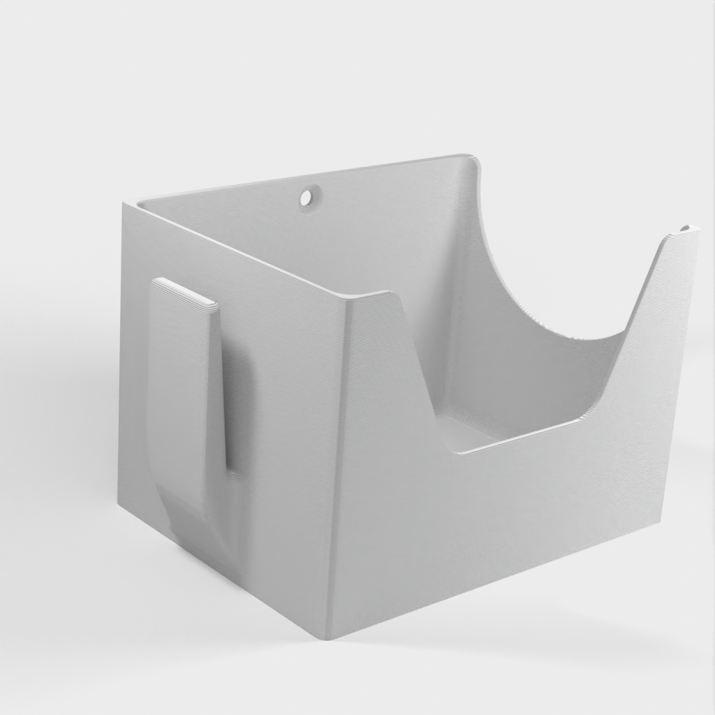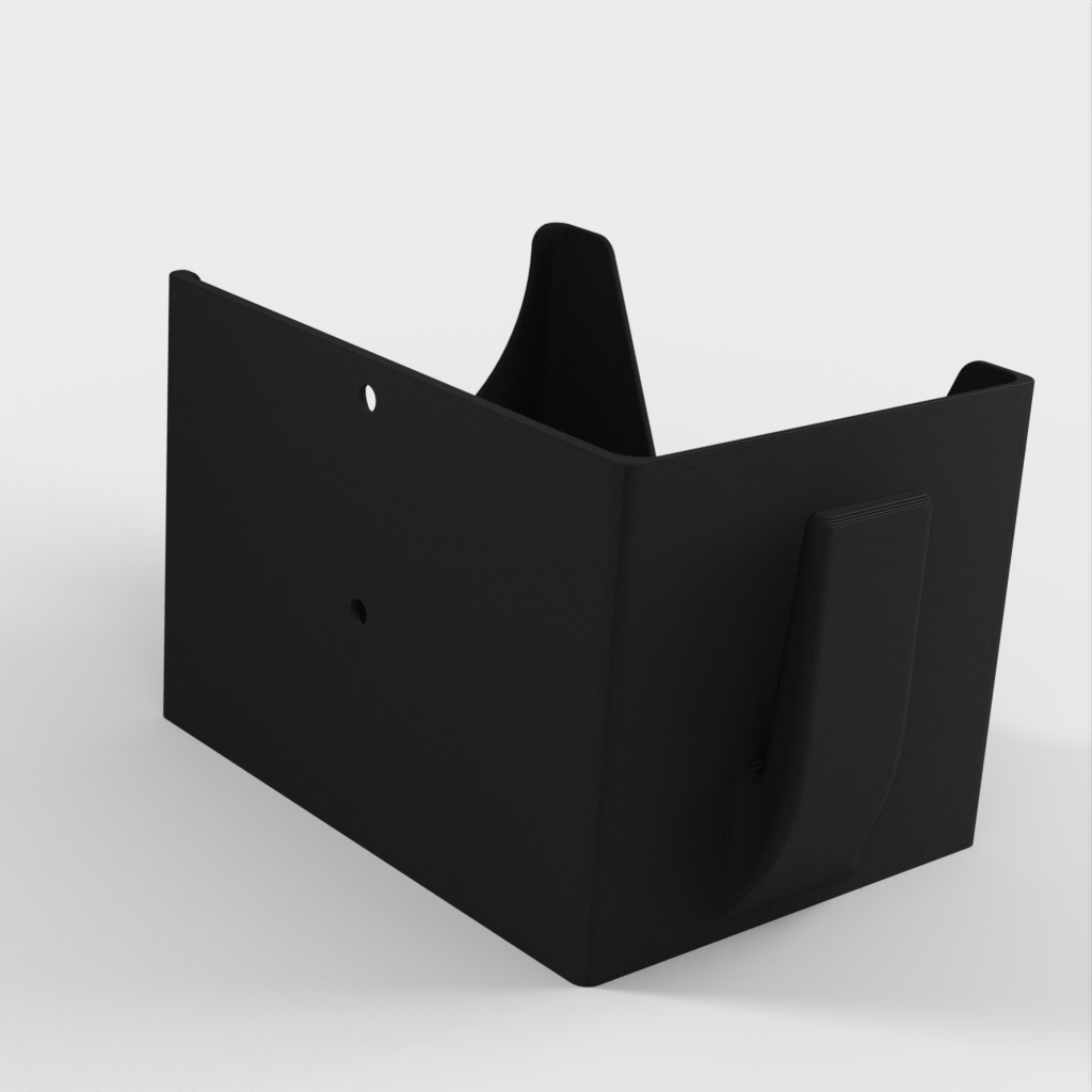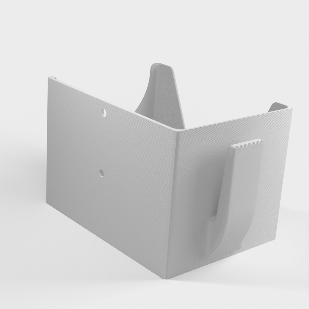 Fästet kan monteras på väggen med 1 eller 2 skruvar och inkluderar en reservhake för nackremmen om det skulle glida ur handen när du sätter i eller tar bort det från fästet. (Det är viktigt att du sätter på nackremmen först för att denna redundansreducering ska vara effektiv).