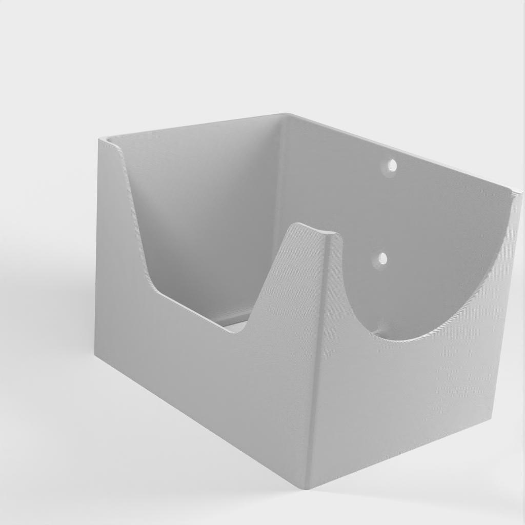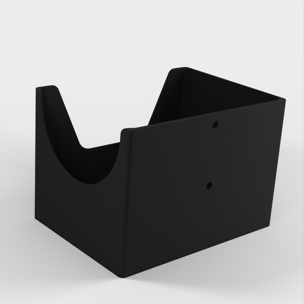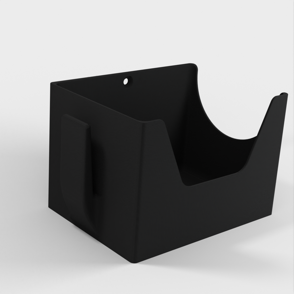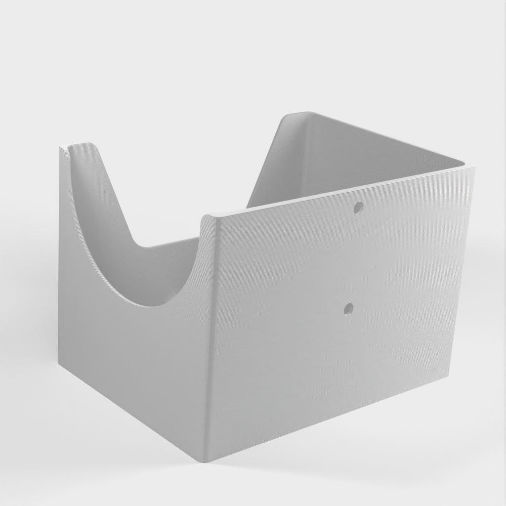 Fästet kan monteras på väggen med 1 eller 2 skruvar och inkluderar en reservhake för nackremmen om det skulle glida ur handen när du sätter i eller tar bort det från fästet. (Det är viktigt att du sätter på nackremmen först för att denna redundansreducering ska vara effektiv).