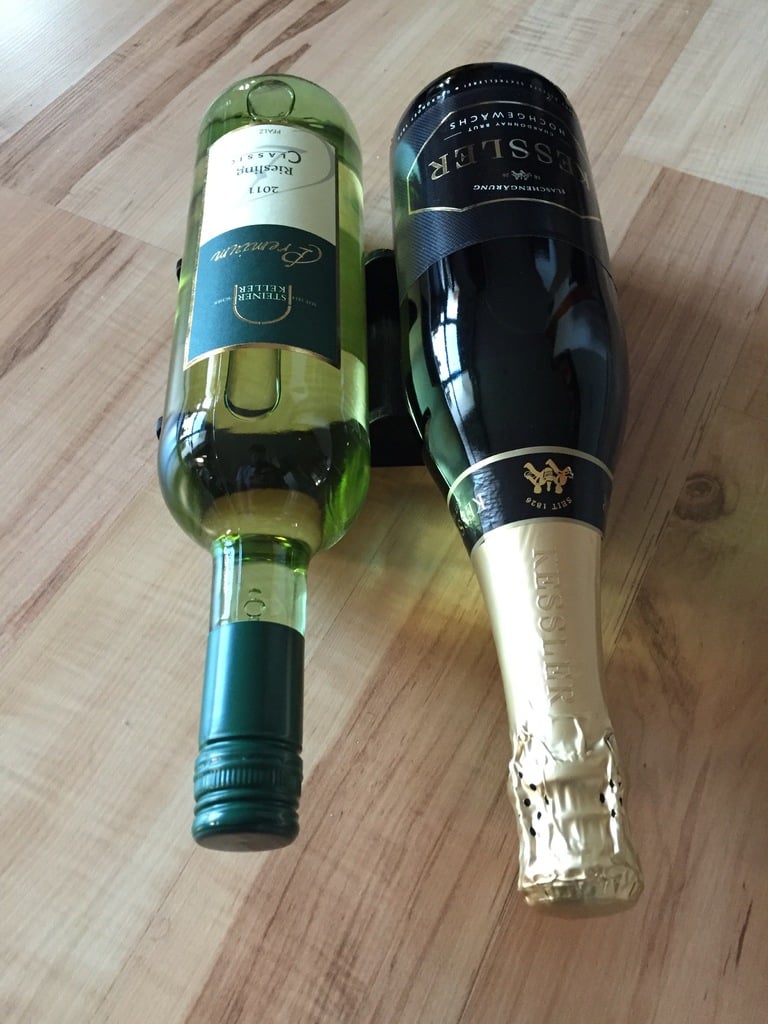 Denna praktiska hållare erbjuder en effektiv lösning för förvaring av dina vin- och champagneflaskor. Den är utformad för att hålla upp till tre flaskor staplade ovanpå varandra, vilket maximerar användningen av ditt utrymme, oavsett om det är i ett kylskåp eller på en hylla. Hållaren är kompatibel med flaskor med en diameter på 70 till 90 mm, vilket säkerställer att de flesta vanliga vin- och champagneflaskor sitter säkert och stabilt.
