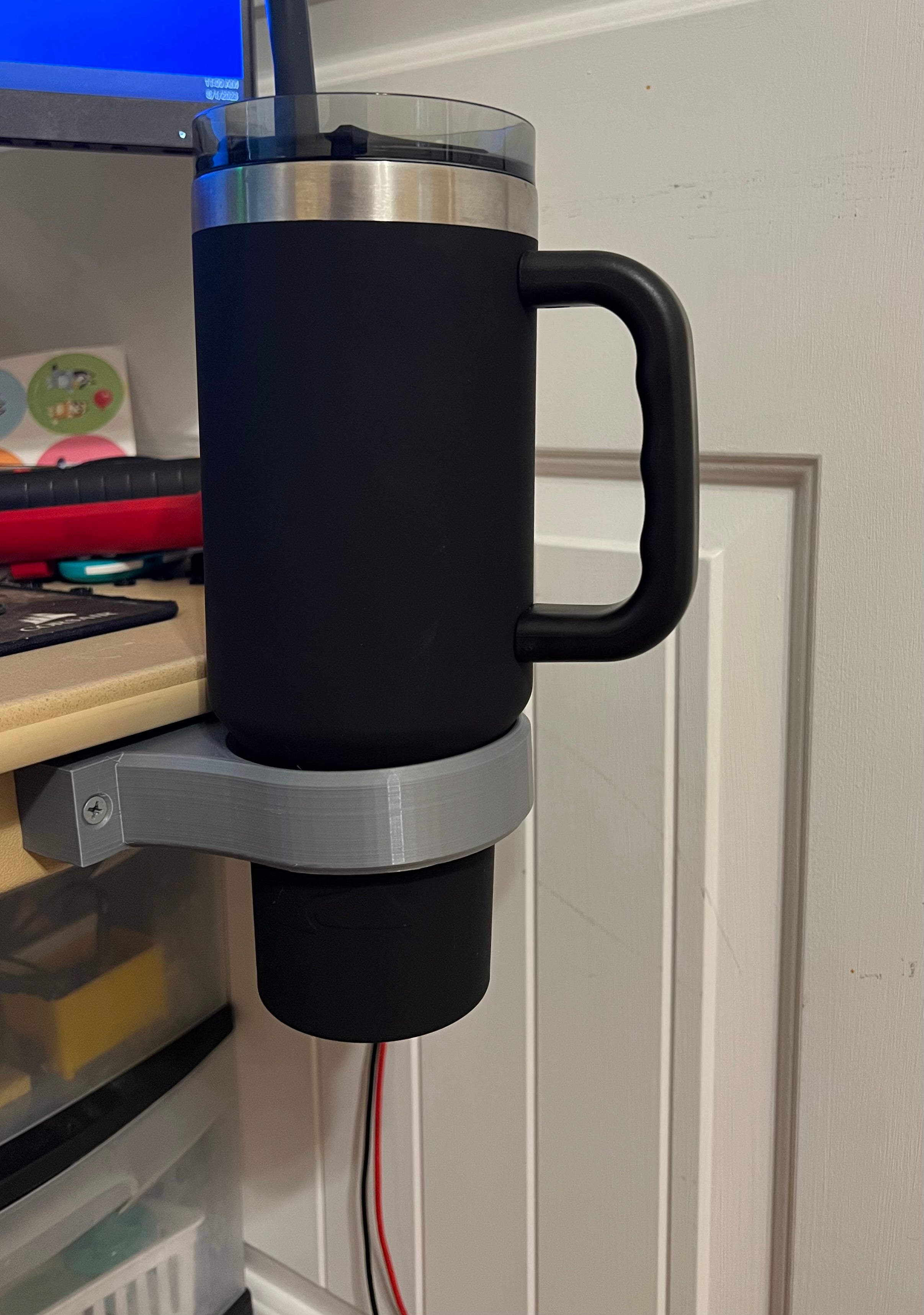 Mugghållaren är utformad för att enkelt skruvas fast på sidan av ditt skrivbord, vilket frigör värdefull arbetsyta och håller din dryck nära till hands. Dess robusta konstruktion säkerställer att din kopp står stabilt, och den kan också vara en idealisk lösning som mugghållare på båten eller för användning i verkstaden, husvagnen eller någon annanstans där en fast och pålitlig mugghållare behövs.