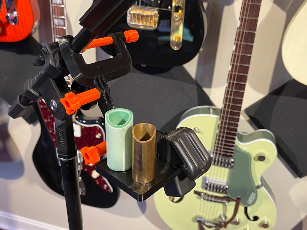 Stativet fästs smidigt på de flesta mikrofonstativ, vilket gör det till en idealisk hållare för gitarrtillbehör för att hålla din spelyta organiserad. Det är kompatibelt med HeyVyes modulära monteringssystem och kan även användas med andra GoPro-kompatibla armar som kan monteras på ett mikrofonstativ, vilket ger dig flexibilitet i din installation.