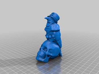 Denna unika figur föreställer en imponerande kråka klädd i detaljerade steampunk-inspirerade kläder. Fågelns fjädrar är intrikat utformade för att likna urverksdrev och mekanismer, medan dess metalliska höghatt och glasögon ger en touch av industriell sofistikering. Kråkan sitter majestätiskt på en mänsklig skalle, som är utformad med fina detaljer som förstärker det gotiska och mystiska utseendet.
