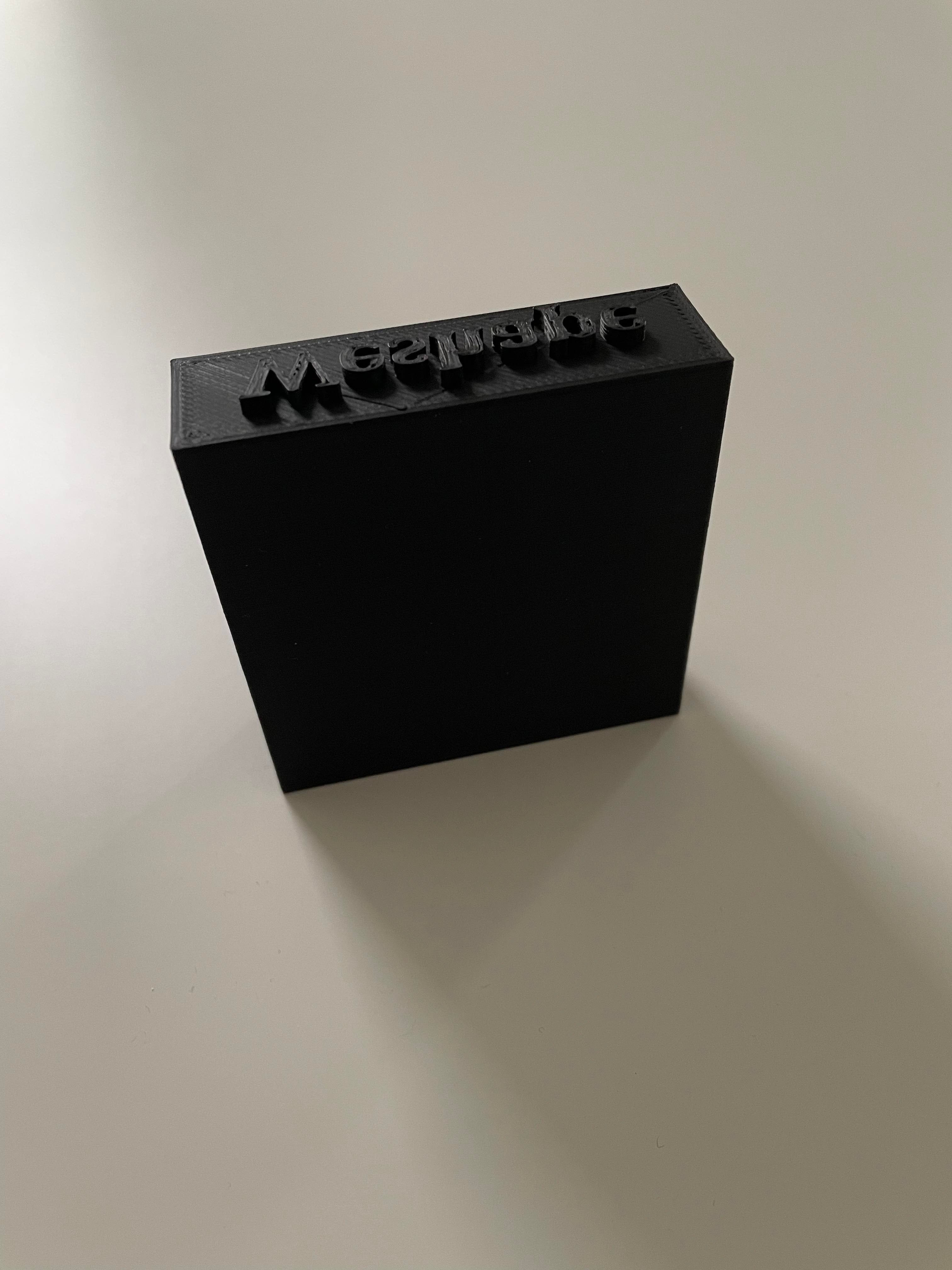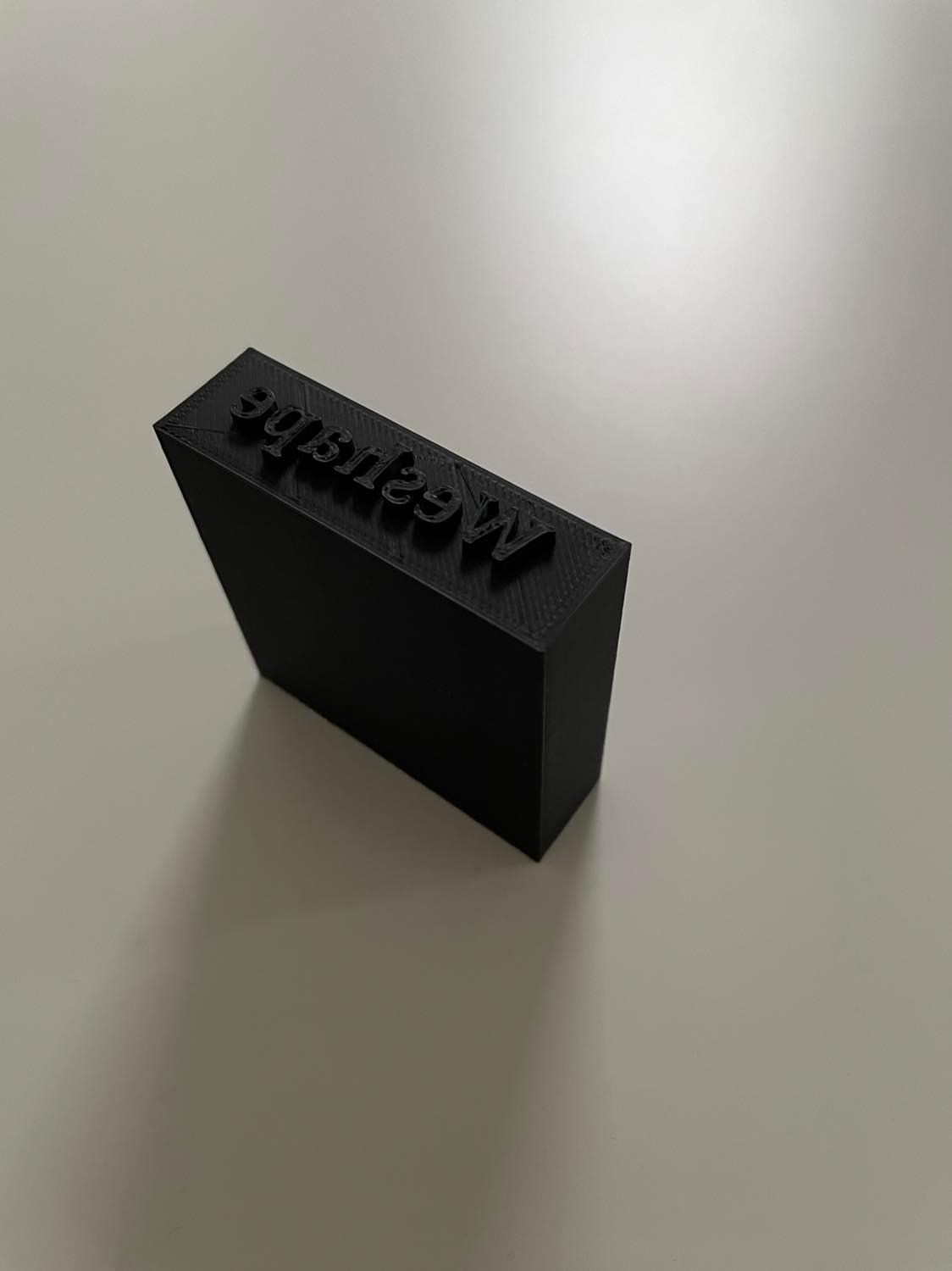 Stämpel där du själv kan bestämma texten och fostret. Kan användas för att göra tryck i olika material.