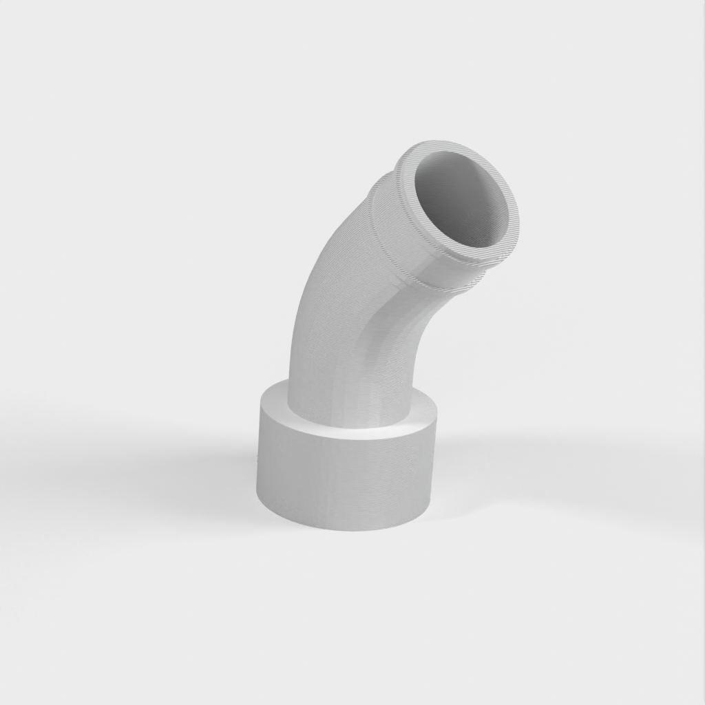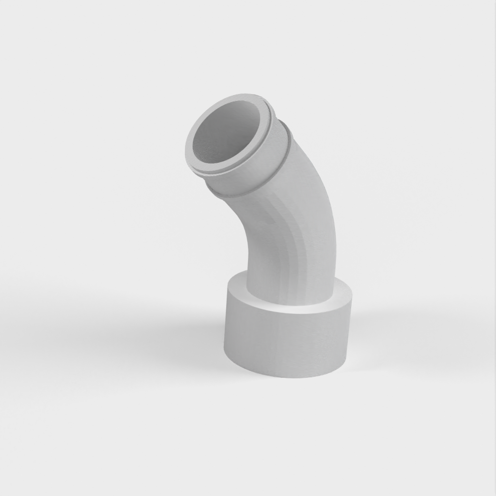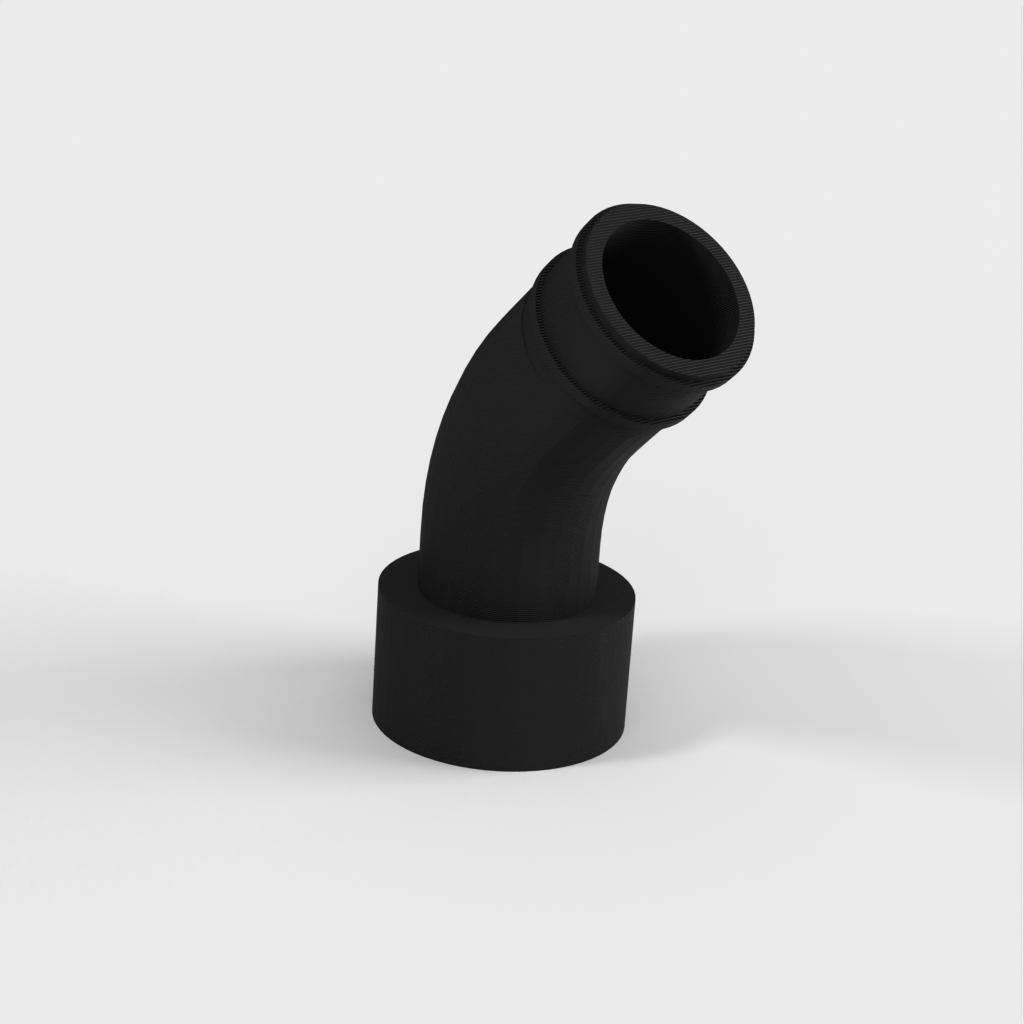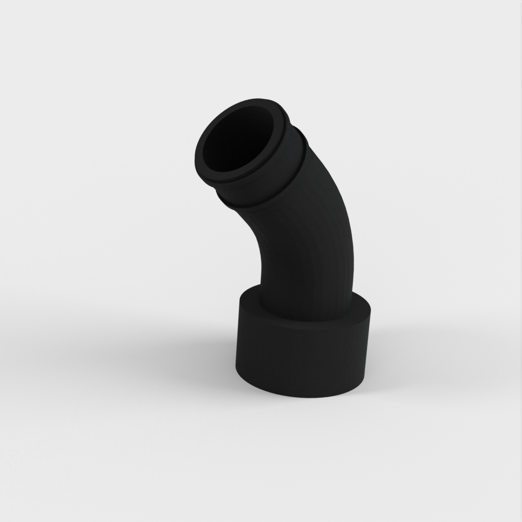 Vid senare användning av kopplingen upptäckte jag att ett problem kunde uppstå om det inte fanns tillräckligt med utrymme bakom sågen för den stela delen av vakuumslangen. För att lösa detta designade jag om den med en böj så att den kan passa direkt till den flexibla slangen som går förbi den stela delen.