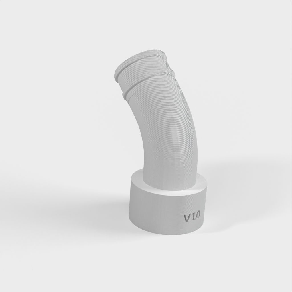 Efter några års användning upptäckte man också att även den böjda biten lätt kunde spricka. För att förbättra detta har jag tryckt om kopplingen med hjälp av en flexibel filament, varefter jag inte har haft några problem.
