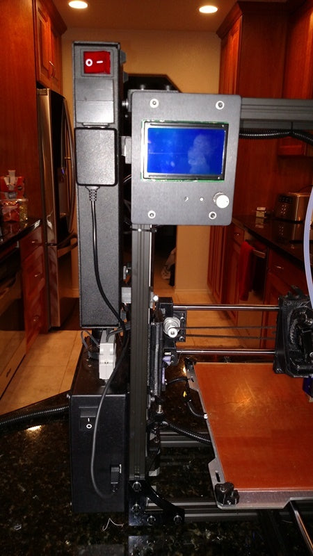 Fästet säkerställer en stabil montering med 4 mm-skruvar direkt på baksidan av nätaggregatet, vilket ersätter de ursprungliga platta skruvarna. För montering på skrivarramen används 5 mm-skruvar och aluminiummuttrar, vilket säkerställer en robust installation. Det rekommenderas att använda lågprofilerade huvuden på 5 mm-bultarna för att undvika potentiell störning av skrivarens rörliga delar.