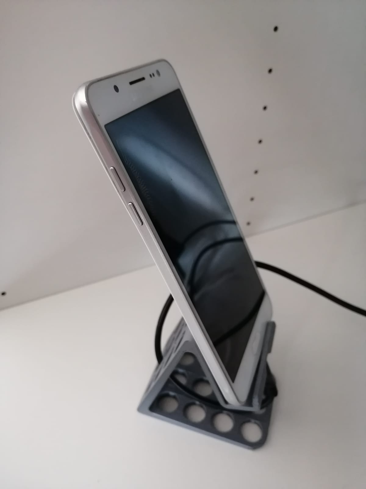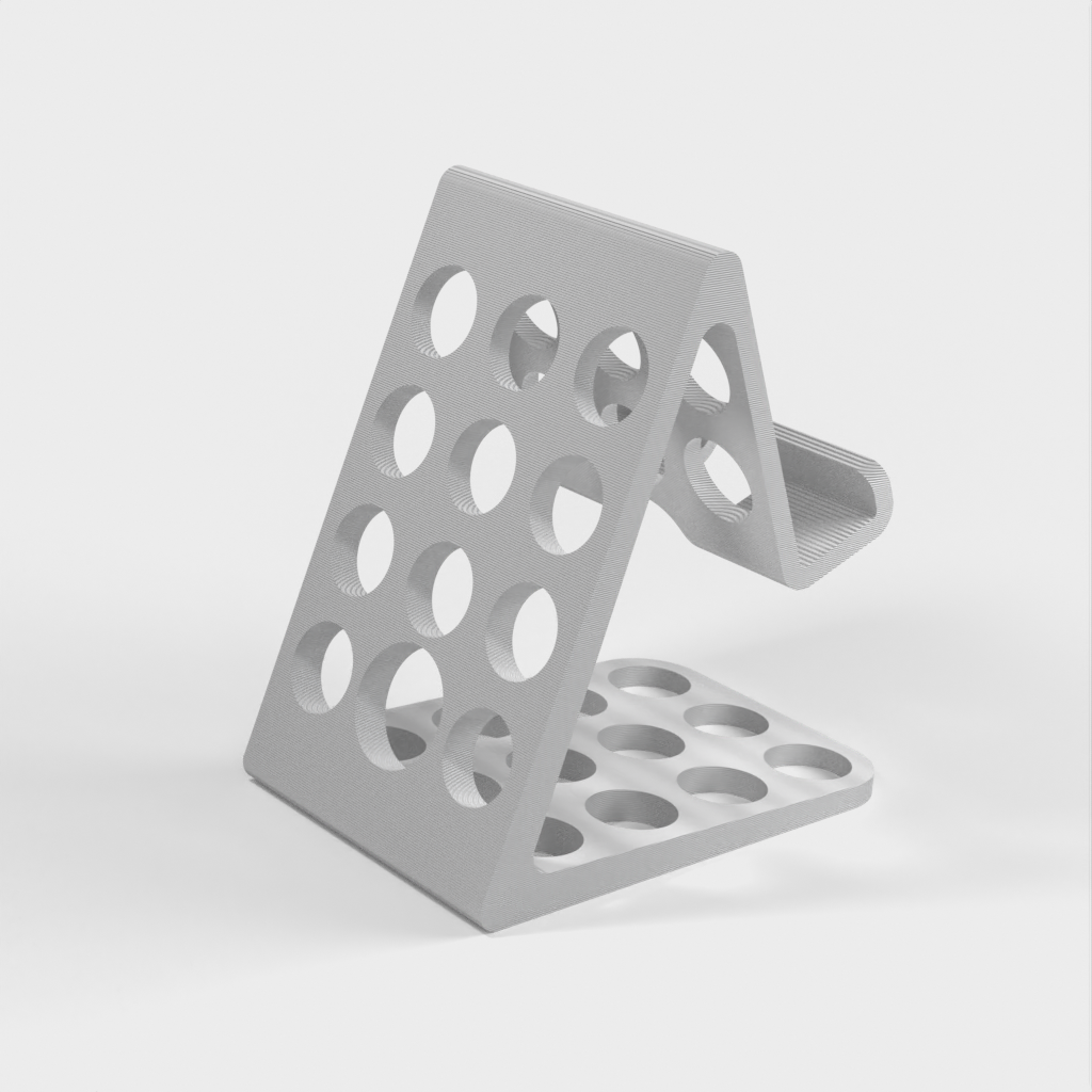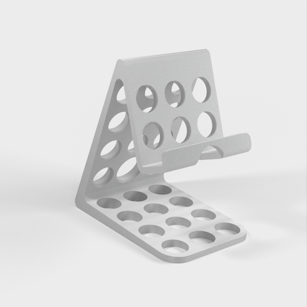 Detta är en telefonhållare som inte kräver stöd för utskrift. Telefonhållaren är designad för att möta dina dagliga behov och se till att din smartphone är säkrad och stabil när du står på den. Den är praktisk och passar alla rum, oavsett om det är ditt kontor, kök eller sovrum.