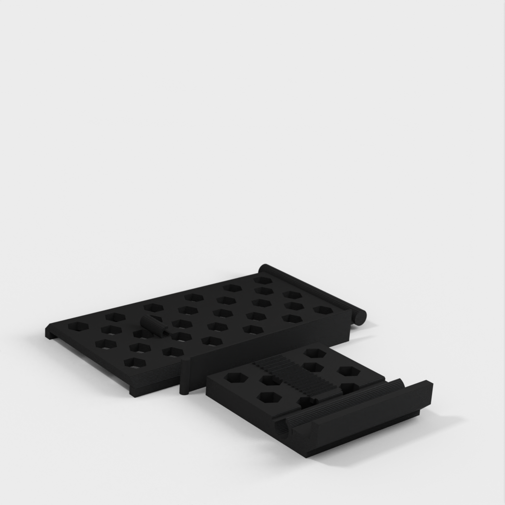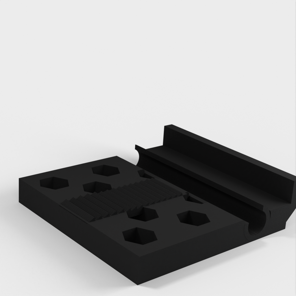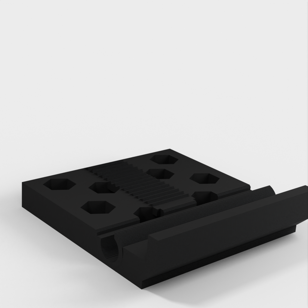 Anpassningsbar och bärbar telefonhållare. Den här hållaren är designad för att passa alla smartphones och är lätt att bära så att du enkelt kan ta den med dig överallt. Det är den perfekta lösningen för att hålla din telefon säker och bekväm var du än är.