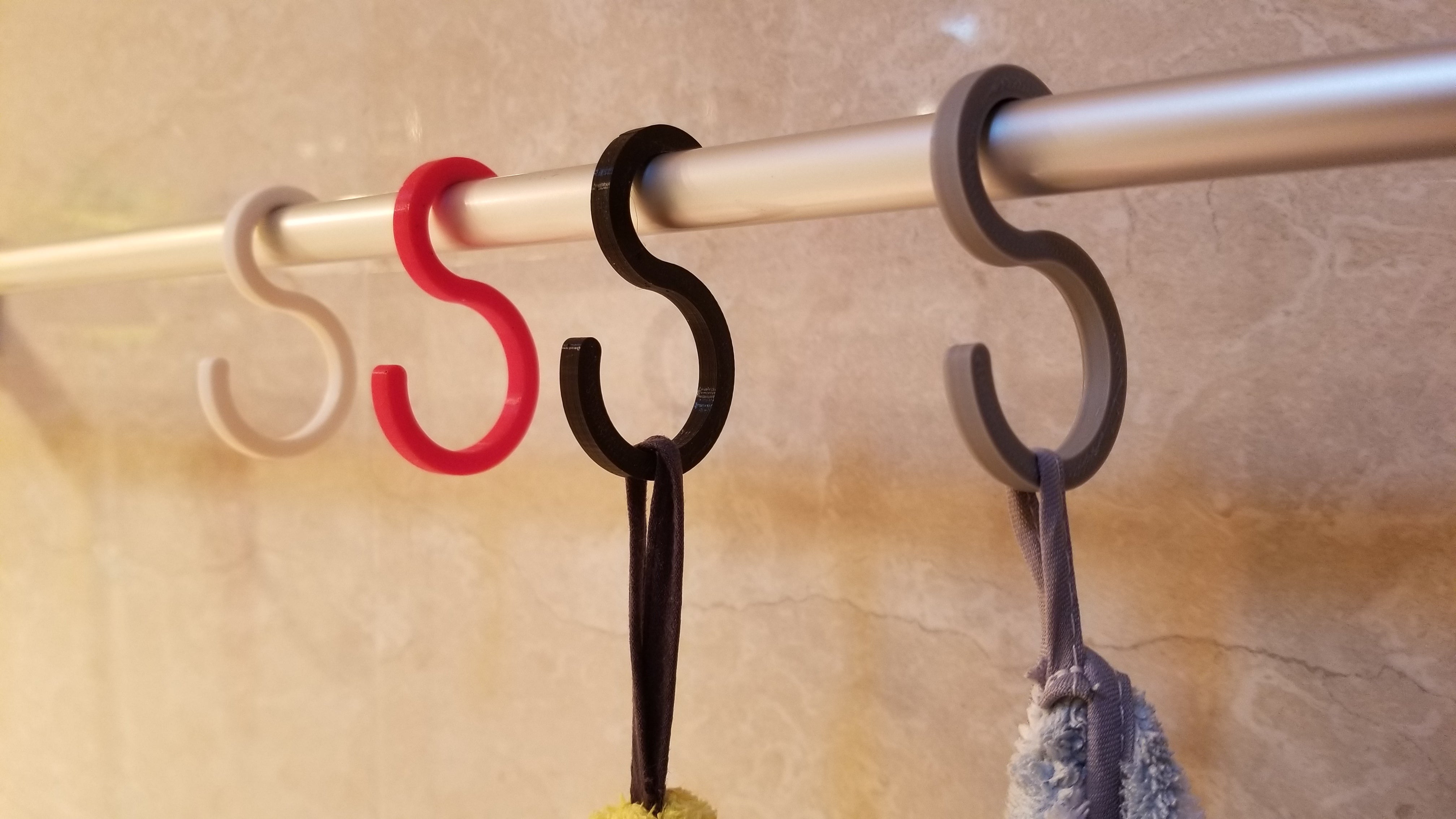 Dessa anpassade S-krokar kan anpassas efter dina önskemål. De är idealiska för användning i både badrum och kök och kan skrivas ut mycket snabbt utan att använda en massa material.