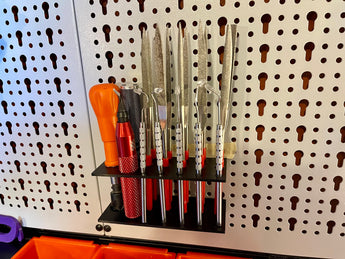 Oavsett om du arbetar med filar, små handverktyg eller letar efter en praktisk hållare för din skruvmejsel och tillbehör, erbjuder det här systemet ett effektivt sätt att organisera dina saker. Det hjälper dig att undvika röran och slöseri med tid på att leta efter verktyg, så att du kan fokusera på ditt projekt.