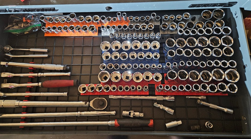 Förbättra din verktygsorganisation med TrackTwist Socket Holder V2 , en smart lösning utformad för att hålla dina 1/2-tums och 3/8-tums hylsor säkra och organiserade. Detta innovativa förvaringssystem är utformat med användarvänlighet och anpassningsbarhet i åtanke, vilket gör det idealiskt för både hobbyister och proffs.
