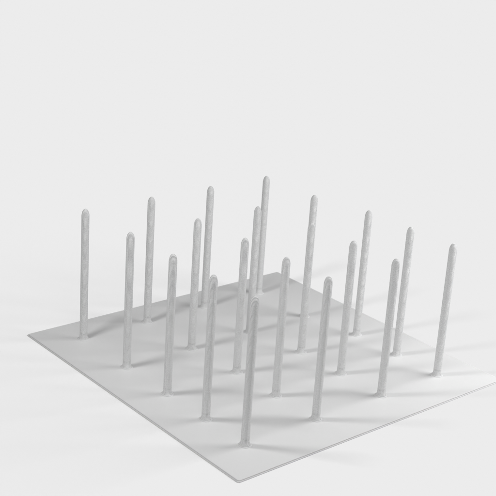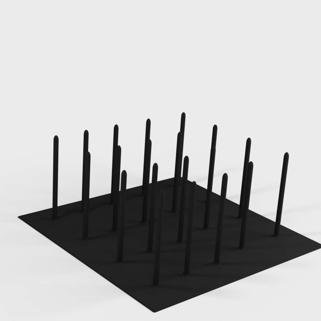 Denna praktiska tråd- och spolhållare är utformad för att organisera dina sybehör. Den rymmer upp till 8 trådrullar med en diameter på 12 cm och ytterligare 12 trådrullar med en diameter på 10 cm. Varje trådrulle kan kombineras med en matchande spole, som förvaras direkt ovanför, vilket ger en organiserad överblick över dina sybehör. Hållarens tunna och flexibla bas gör den enkel att placera i lådor eller förvaringslådor, vilket bidrar till en snygg arbetsyta.