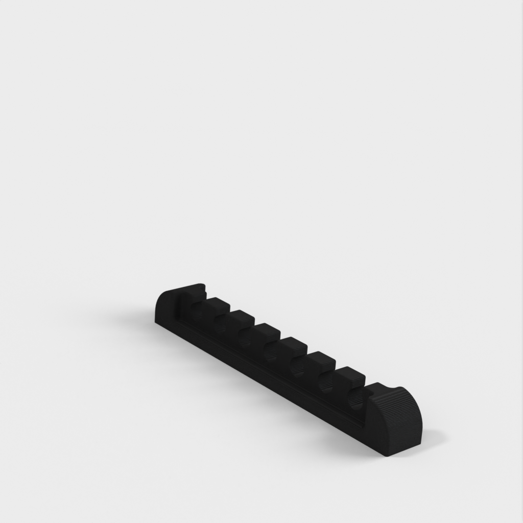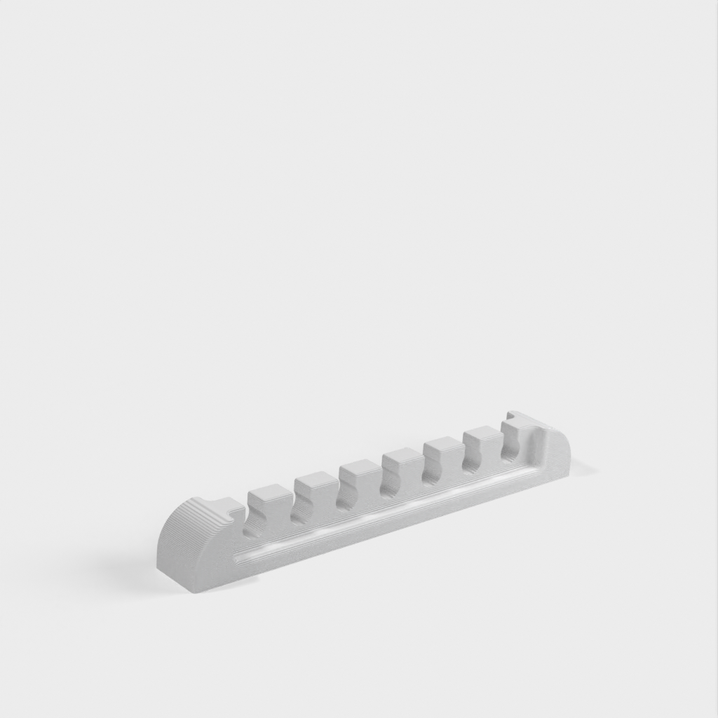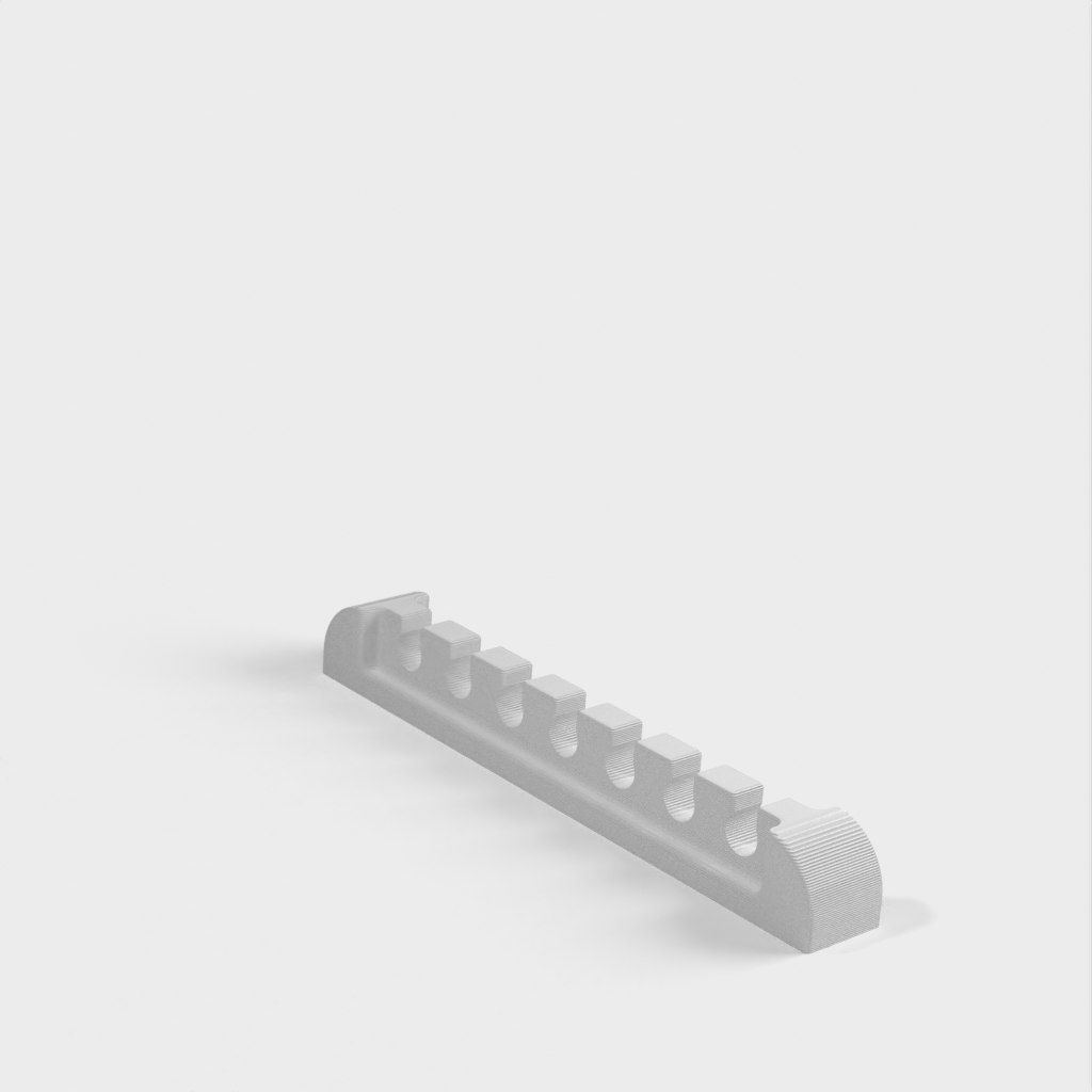 En solid kabelorganisator för större stationära kablar som ethernet- och bildskärmskablar. Denna kabelfördelare hjälper till att hålla ditt skrivbord snyggt och organiserat. Det är en förbättrad modell baserad på originalmodellen som finns på Thingiverse.