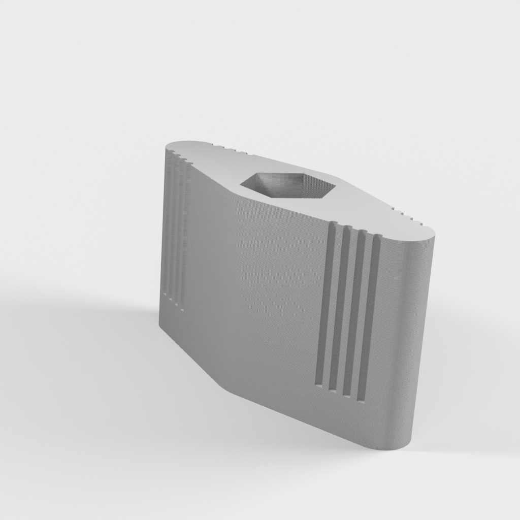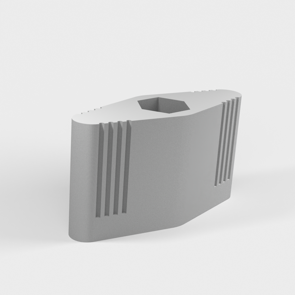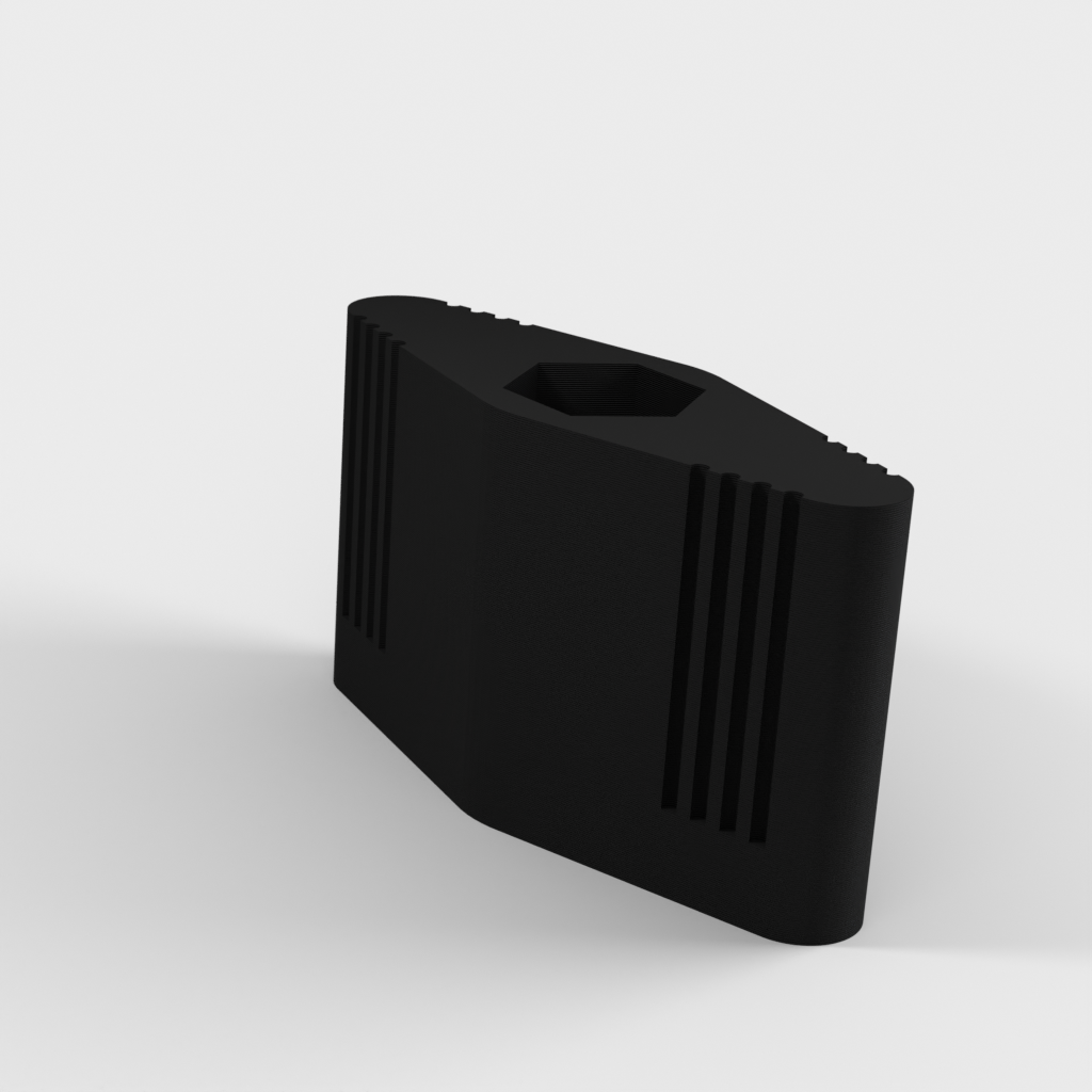 Denna vingmutter erbjuder en praktisk lösning om en del av ditt gräsklipparhandtag är skadad. Den är utformad för att ersätta en trasig originalkomponent, som ofta kan vara tillverkad av ett mindre hållbart material. Även om den är modellerad efter en Gardena-del, är designen anpassningsbar och relevant för många gräsklippare och trädgårdsutrustning från olika tillverkare . Denna vingmutter integrerar en standard M6-stålmutter (DIN 934 / ISO 4032), vilket säkerställer en stark och stabil anslutning. Genom att använda denna del kan du enkelt återställa fästet och stabiliteten på ditt gräsklipparhandtag, vilket förlänger livslängden på din gräsklippar- och trädgårdsutrustning och håller den funktionell.