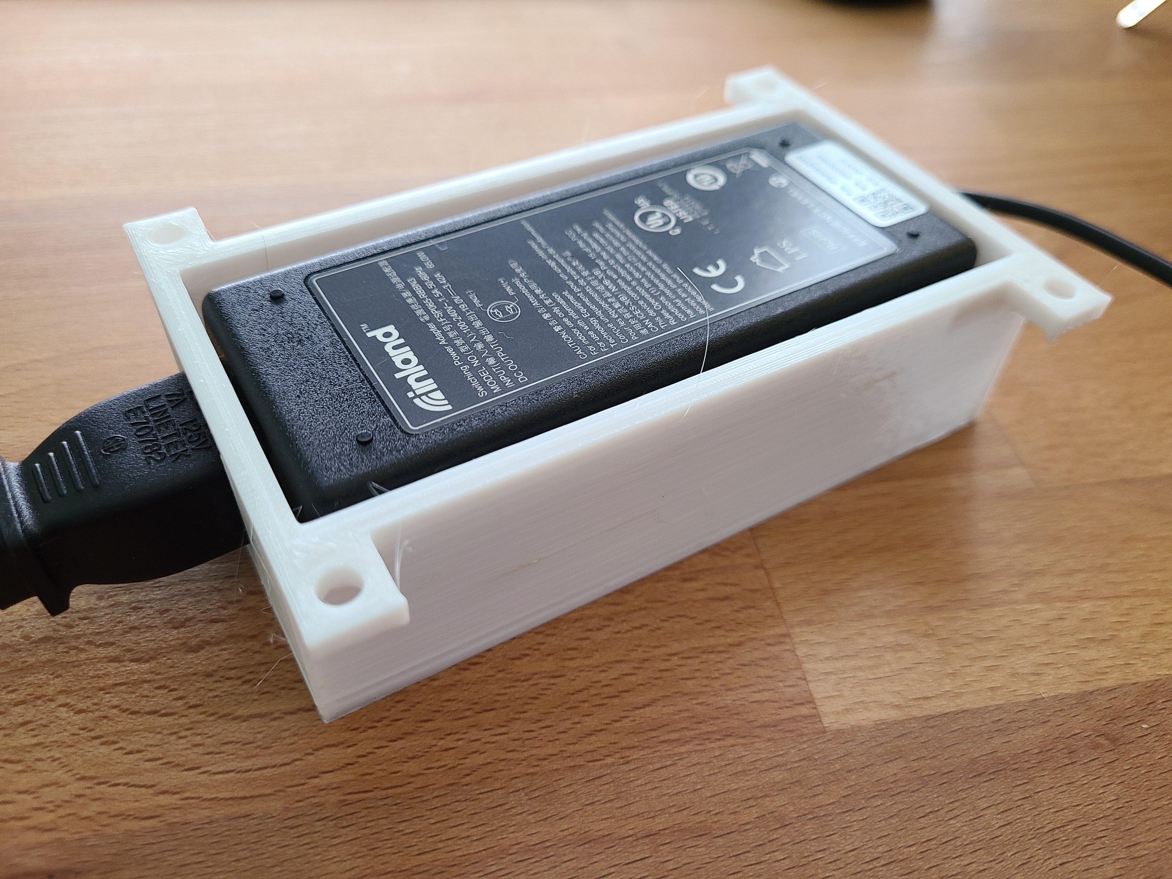 Detta Under-Desk Mount för laptop strömförsörjning är designad för att fästa laptop laddare under skrivbordet. Det hjälper till att förhindra att laddarna försvinner från skrivbordet. Den är speciellt designad för att passa Inland 65W Universal Laptop Adapter (del #FSP065-RBBN3) från Micro Center. Produkten inkluderar en FreeCAD-källfil för remixning för andra nätaggregat.