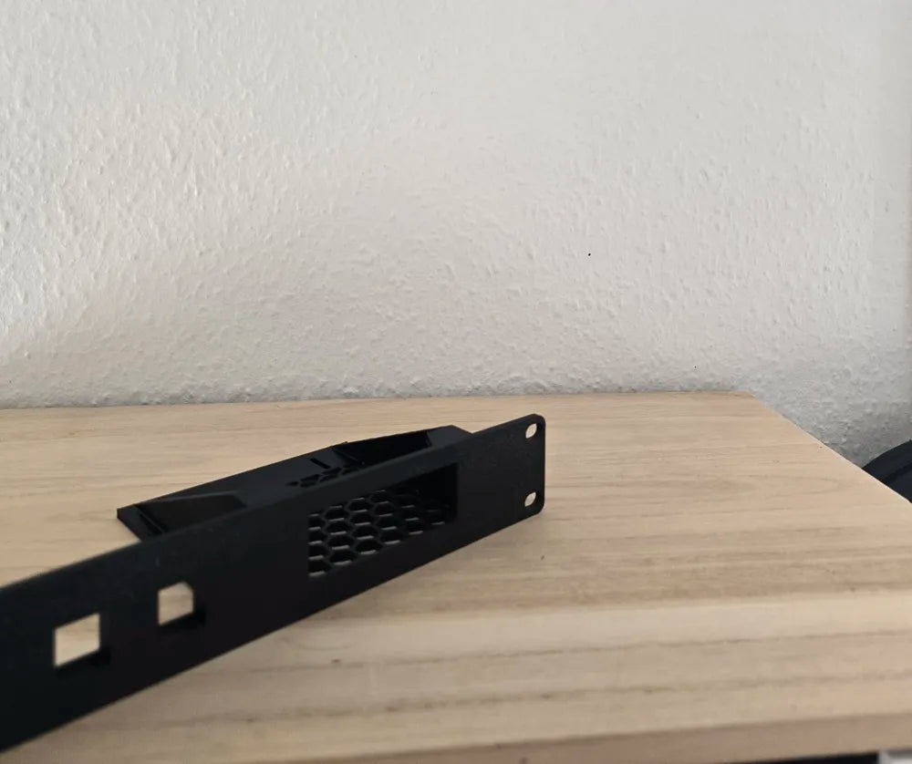 Dette beslag gør det muligt at montere din Unifi Express i et standard 19-tommer rack. Det har en indbygget keystone-åbning til nem kabelstyring og afrundede hjørner for et rent udseende. Løsningen sikrer en stabil installation og organiseret opsætning af dit netværksudstyr i et rack kabinet.