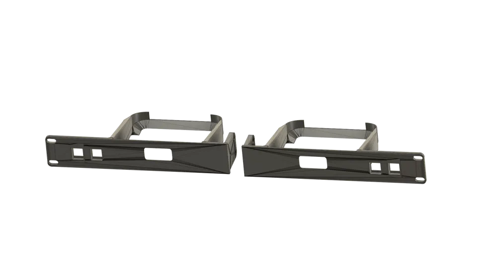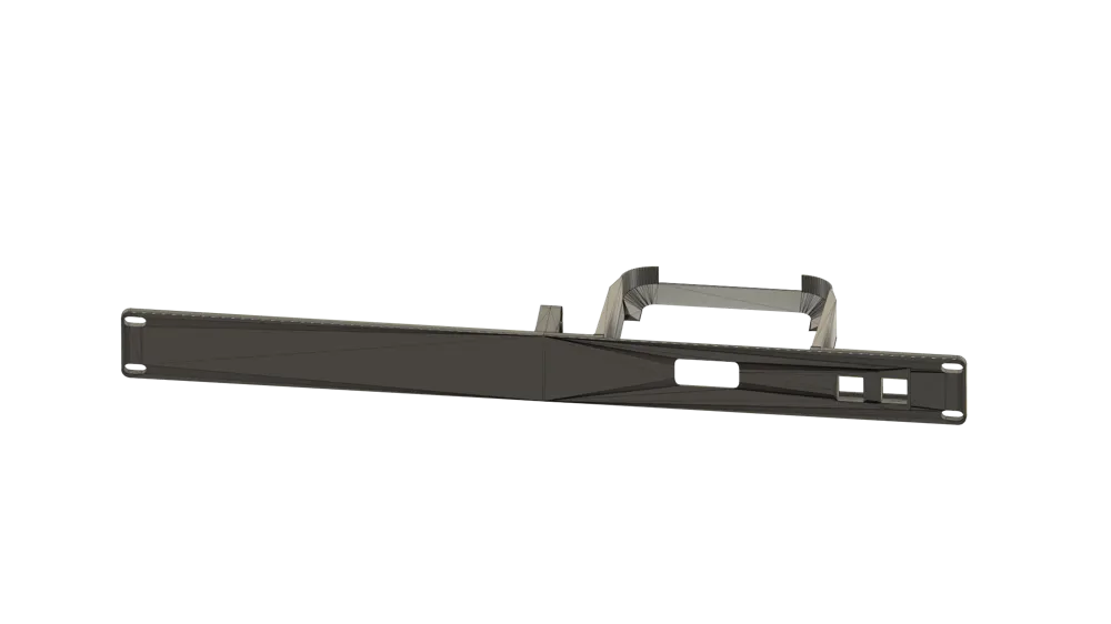 Dette beslag muliggør sikker montering af en UniFi Express 7 i et standard 19-tommer rackskab. Designet inkluderer integrerede pladser til keystone-stik, hvilket sikrer en pæn og organiseret kabelføring i din netværksinstallation. Løsningen hjælper med at integrere din router effektivt med øvrigt rackudstyr.