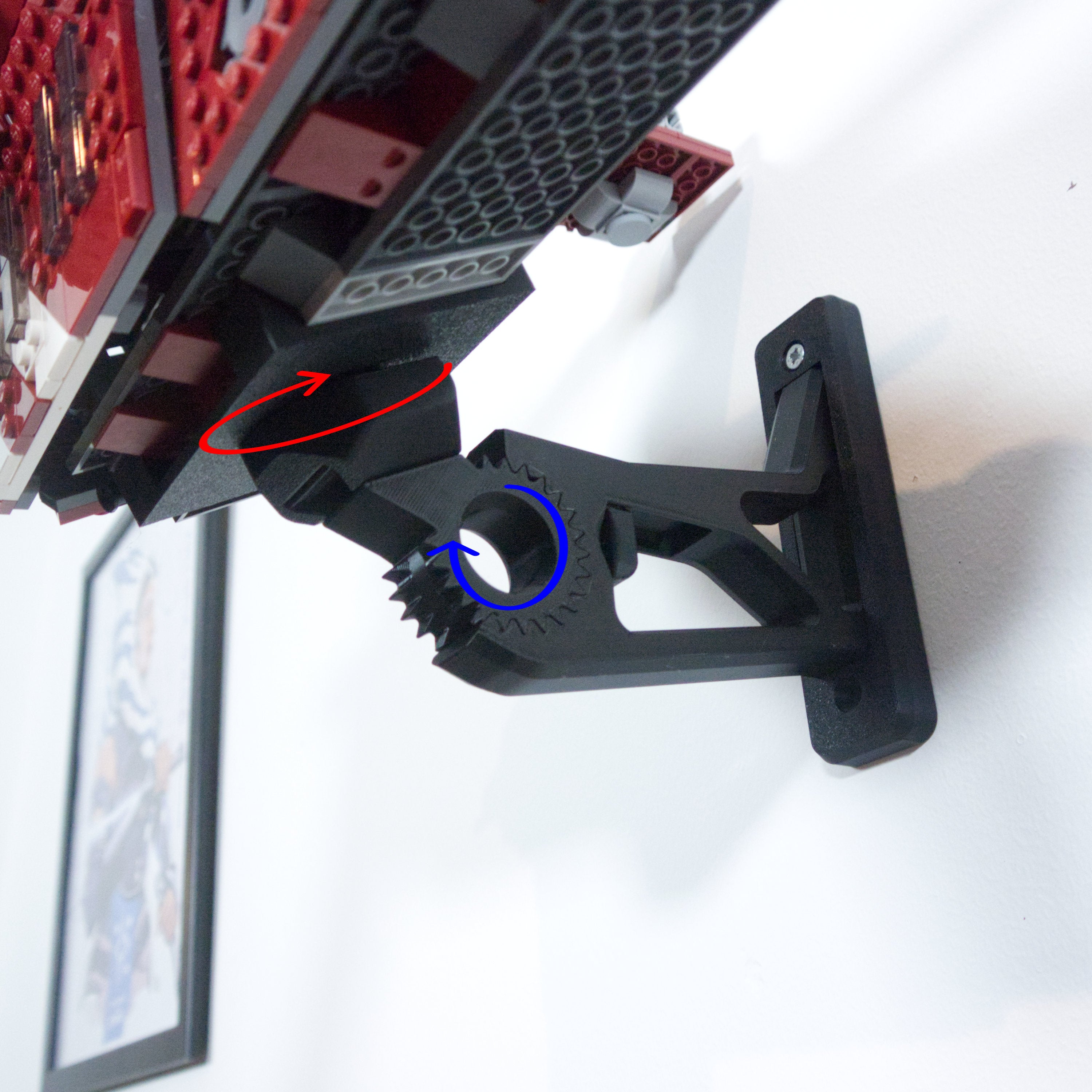 - Fästets arm har två rotationspunkter, vilket möjliggör åtta olika orienteringar av modellen.