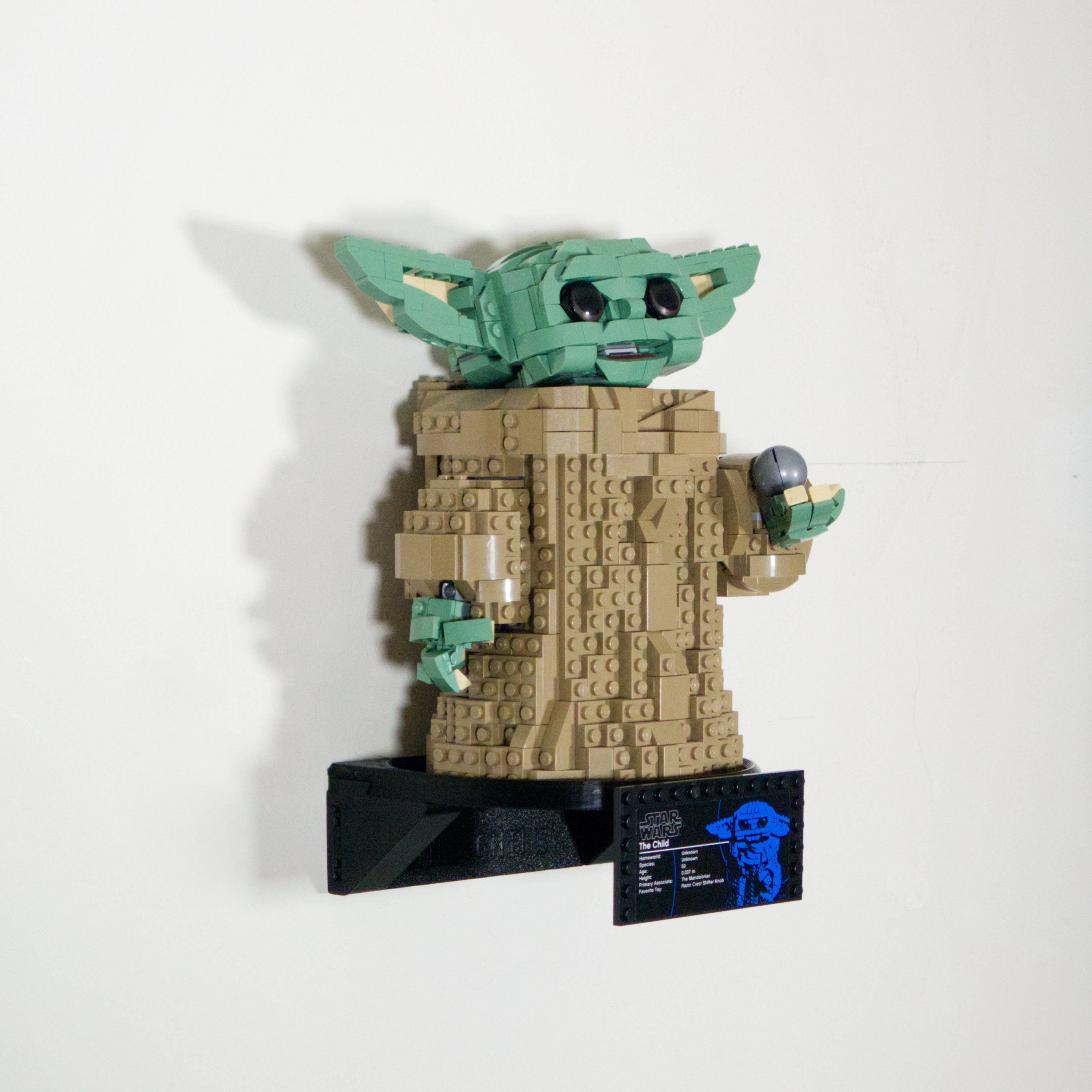 Dette vægbeslag er designet specifikt til LEGO-sættet 75318 The Child. Løsningen sikrer en stabil fremvisning, hvor modellen nemt kan tages ned og sættes op igen. Beslaget monteres med en enkelt skrue og inkluderer en holder til den medfølgende informationsplade for en komplet udstilling.