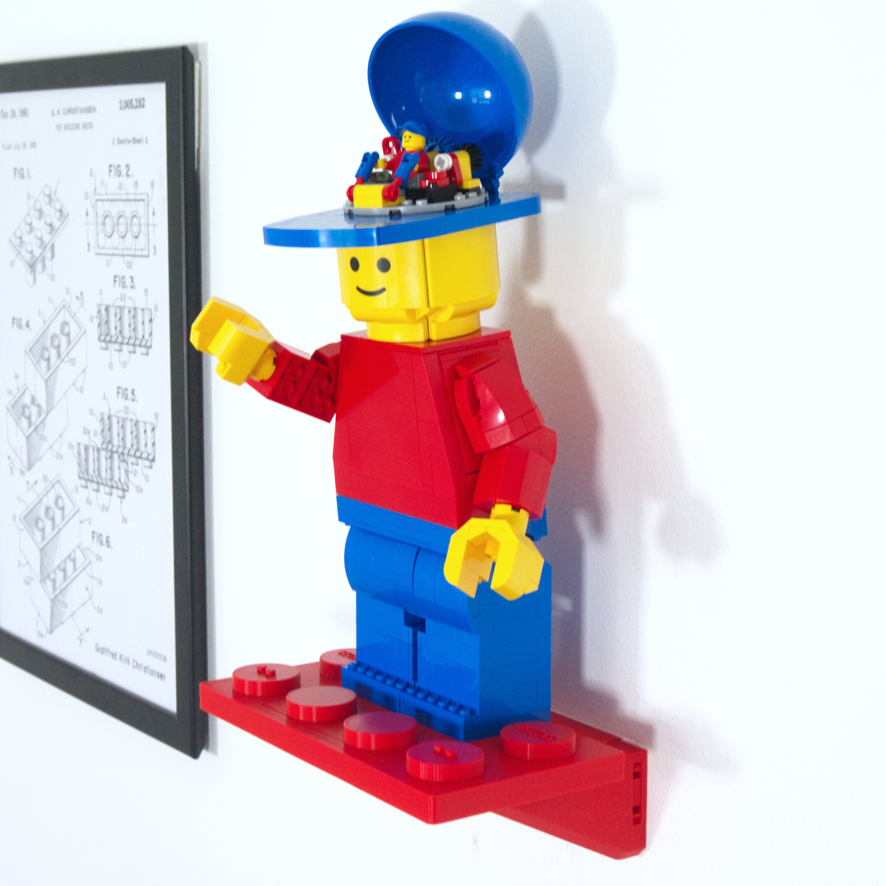 - Väggfäste designat specifikt för den uppskalade minifiguren 40649.