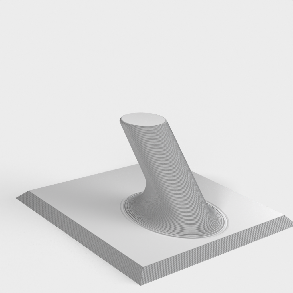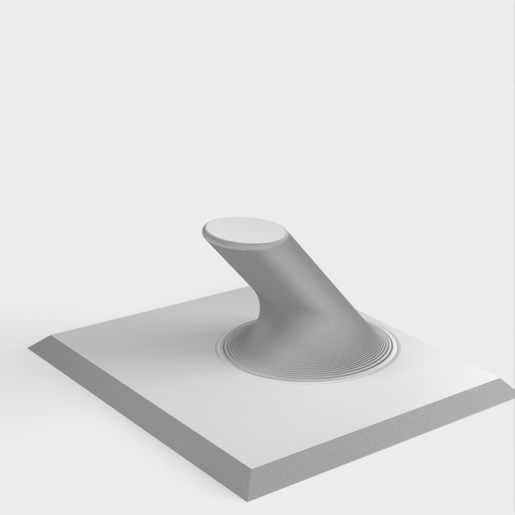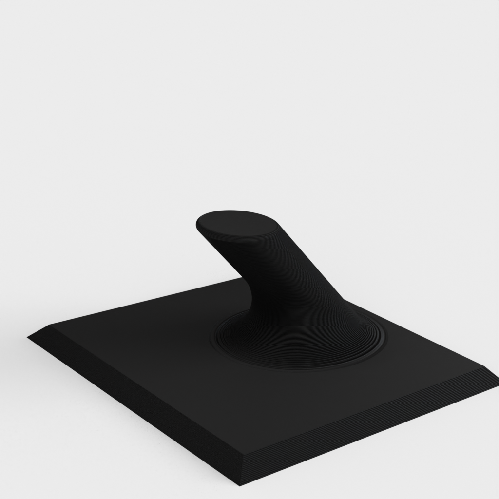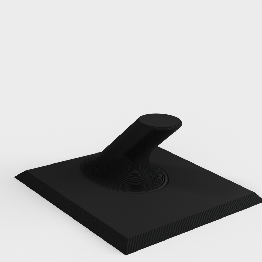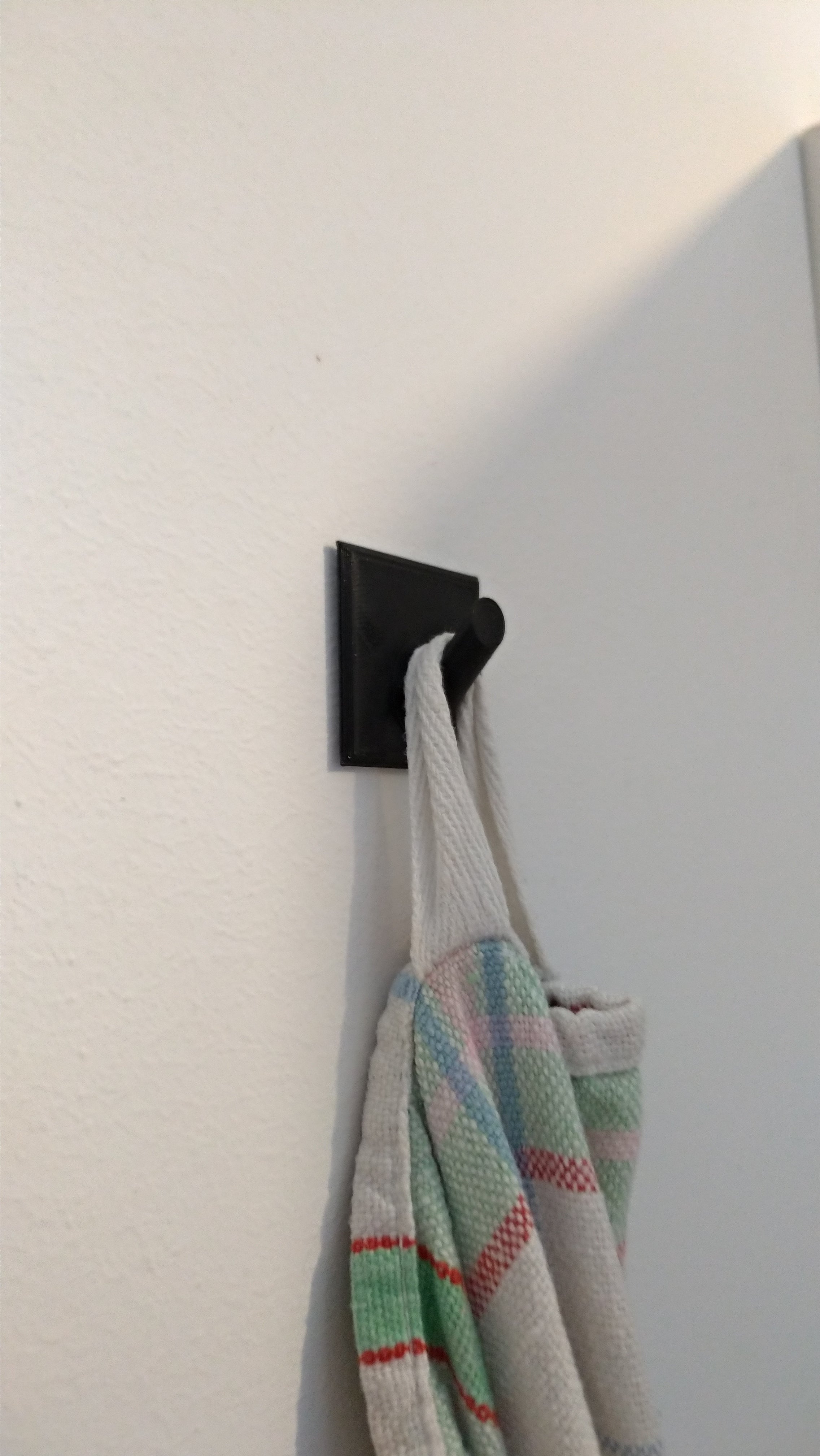 En väggkrok designad för att hänga olika föremål på väggen med hjälp av monteringstejp. Den kan tryckas i olika storlekar för att klara den vikt som krävs. Standardstorleken fungerar med vanliga kökshanddukar. Montera den på väggen med stark monteringstejp.