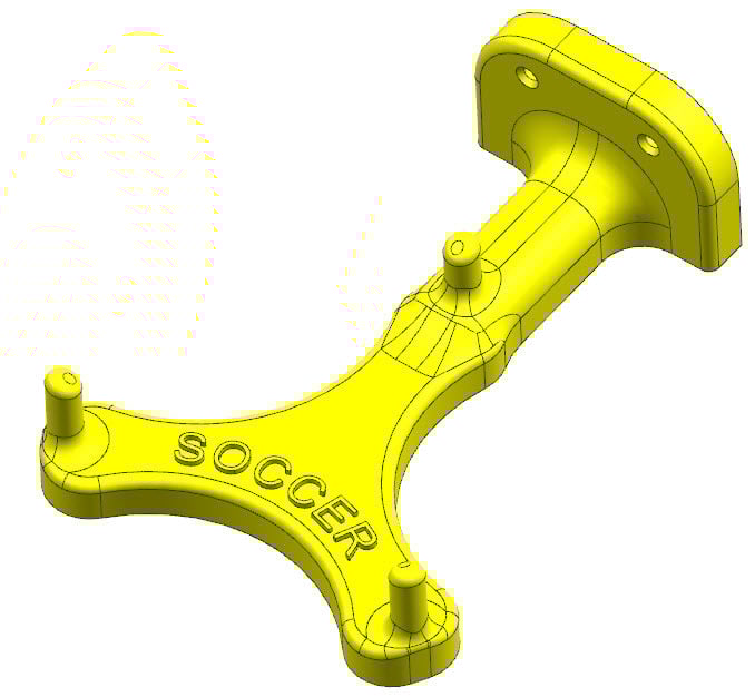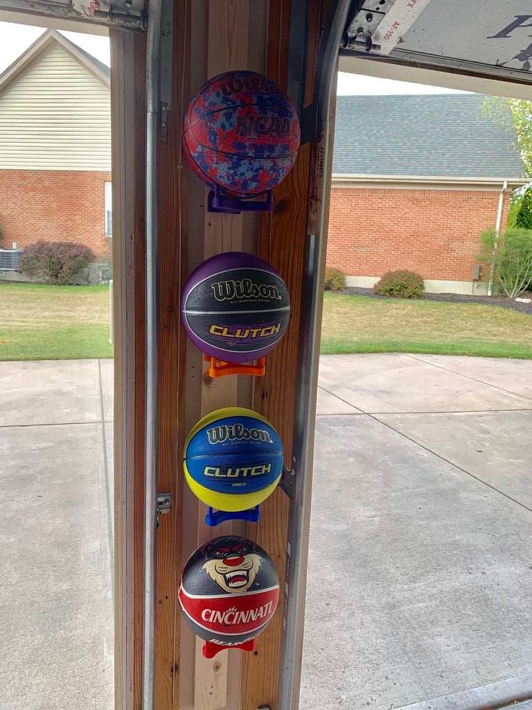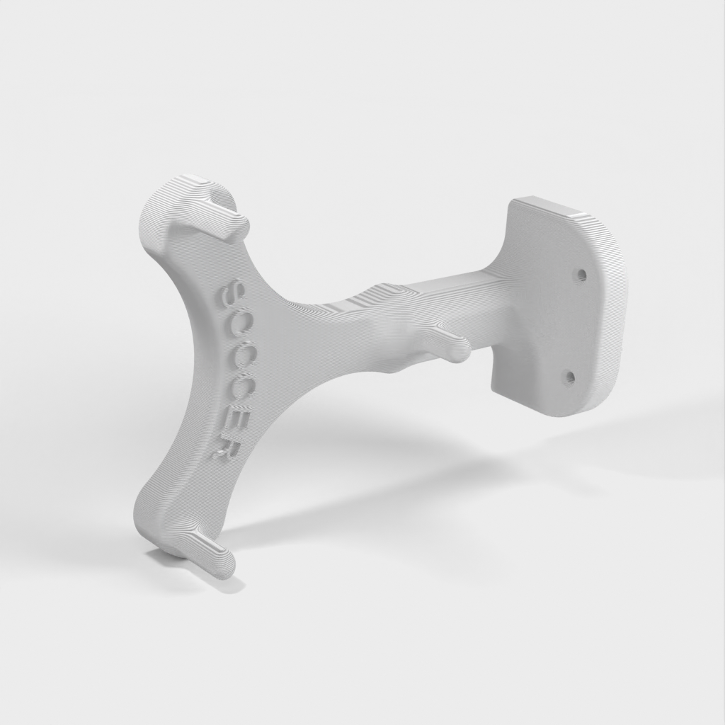 Håll din basket, fotboll eller volleyboll organiserad och lättillgänglig med denna väggmonterade hållare. Denna förbättrade modell är byggd i ett stycke, vilket gör den mer solid och pålitlig. Du kan välja mellan fyra ".stl"-modeller, tillgängliga med logotyper eller helt enkla. En enkel och effektiv lösning för idrottshallens, träningslokalens eller den egna idrottsanläggningens bollförvaringsbehov.