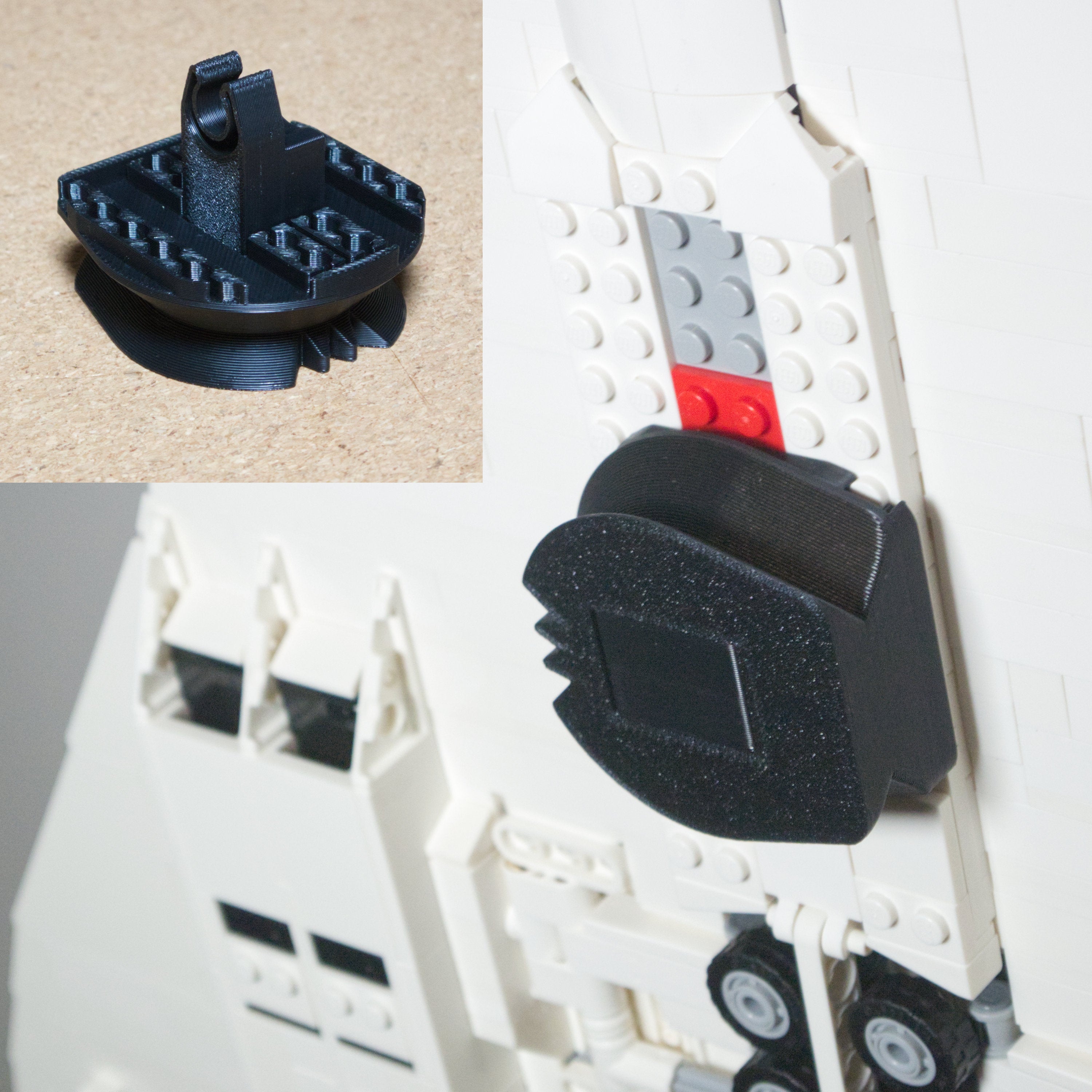 Fremvis din LEGO Concorde-model sikkert på væggen med dette justerbare ophæng. Løsningen giver mulighed for at vinkle flyet i flere retninger eller montere det fladt mod væggen. Der medfølger desuden et separat beslag til informationspladen, så hele sættet kan præsenteres samlet i udstillingen.