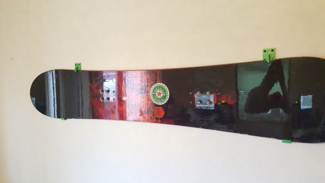 Dessa är delar för att fästa en snowboard på väggen. De övre delarna kan flyttas så att de kan öppnas. Snowboarden kan enkelt placeras i hållarna vilket gör din vägg eller verkstad snyggare.