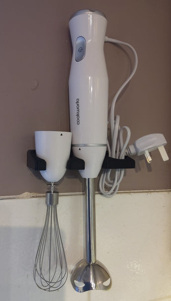 Optimera ditt kök och håll dig organiserad med detta smarta väggfäste för din stavmixer. Fästet är utformat för att skapa en prydlig och funktionell miljö och låter dig enkelt förvara din stavmixer, dess tillbehör och sladd på ett ställe. Detta frigör värdefullt skåputrymme och håller dina köksbänkskivor rena.