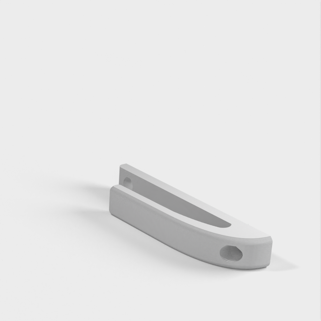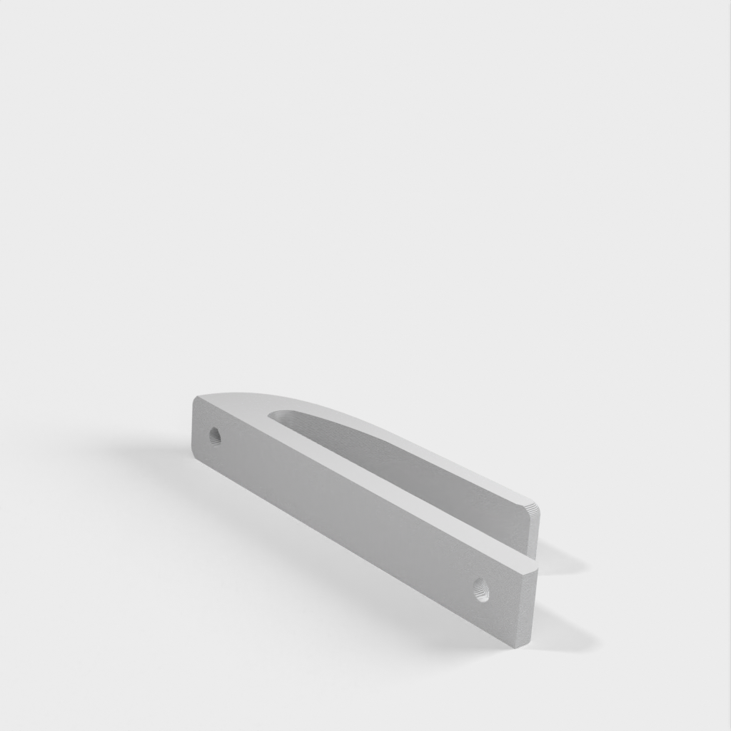Den kan användas med surfplattor som är 14,5 mm (9/16") eller mindre tjocka. Om din surfplatta är tjockare, skala upp efter behov. Du måste skriva ut två och montera dem med #8 försänkta skruvar.