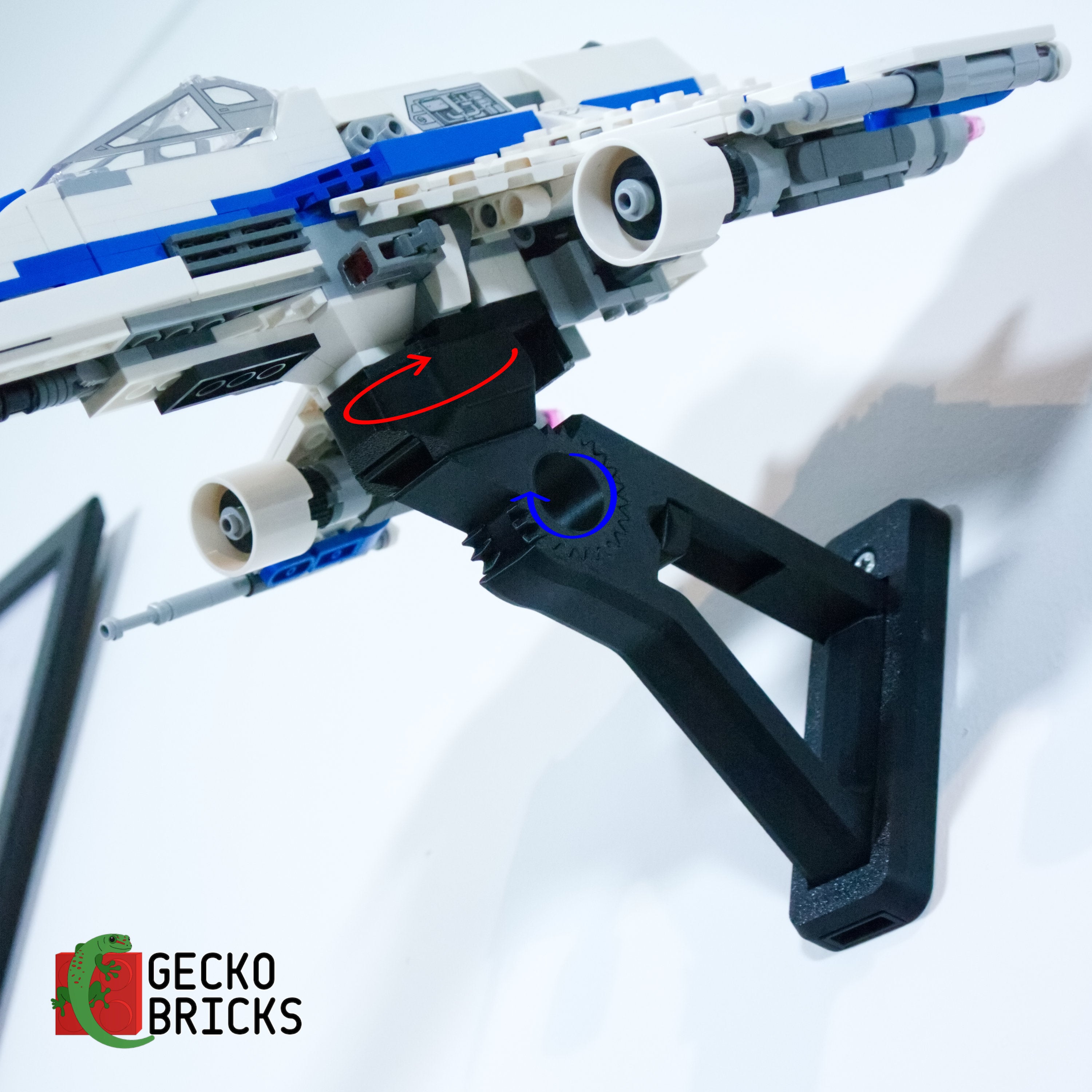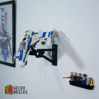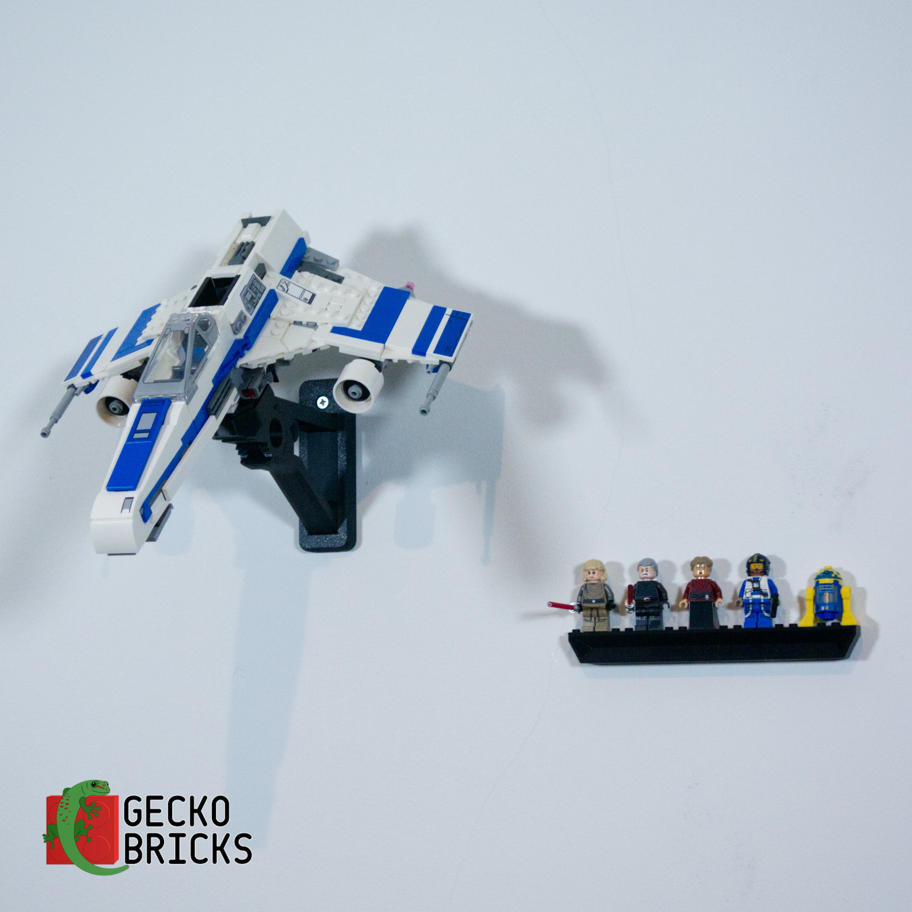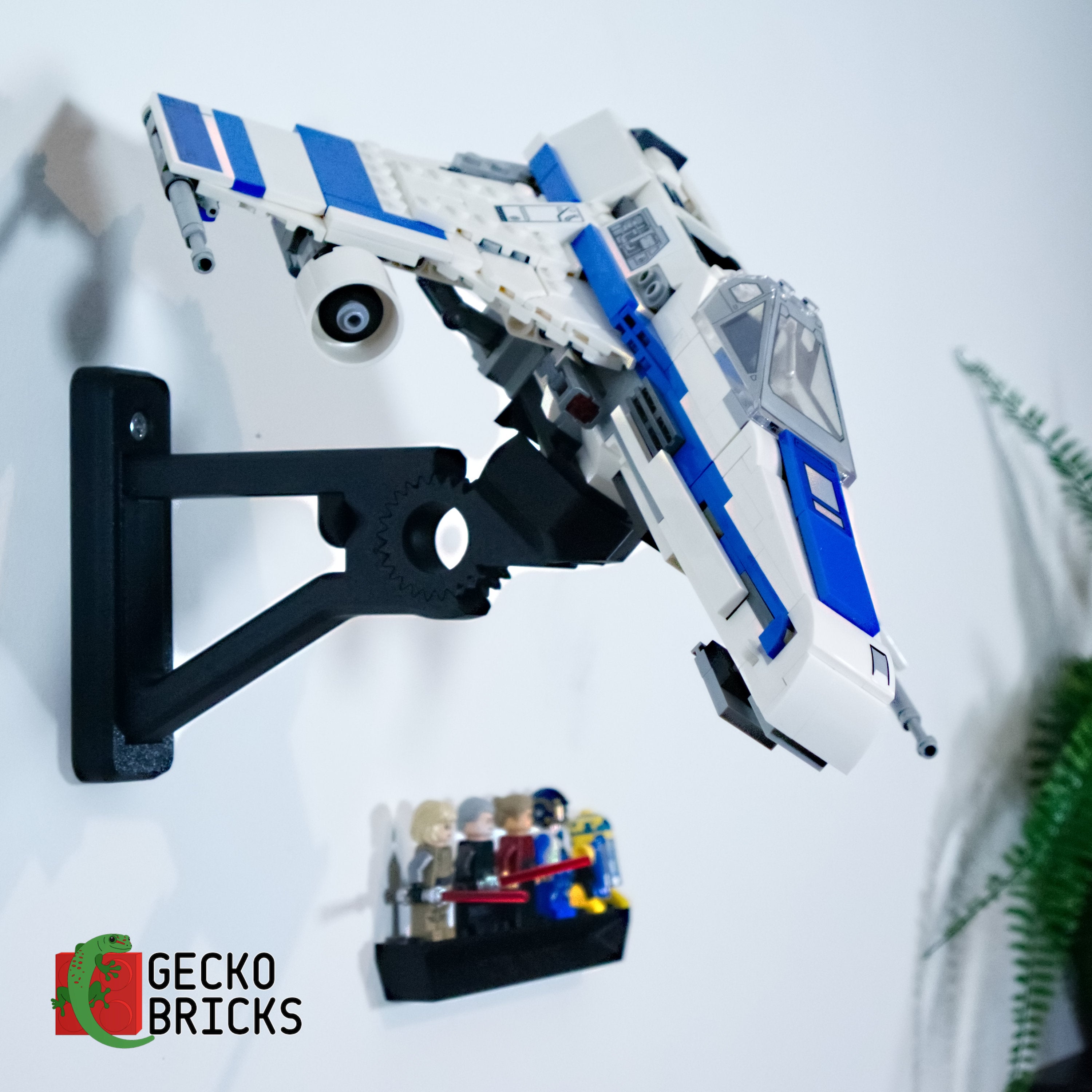 Detta justerbara väggfäste är specifikt utformat för Star Wars New Republic E-Wing 75364. Det gör det möjligt att visa modellen i olika vinklar och orienteringar för att framhäva detaljerna. Hållaren inkluderar även en separat montering för minifigurer och gör det enkelt att ta bort setet från väggen igen.