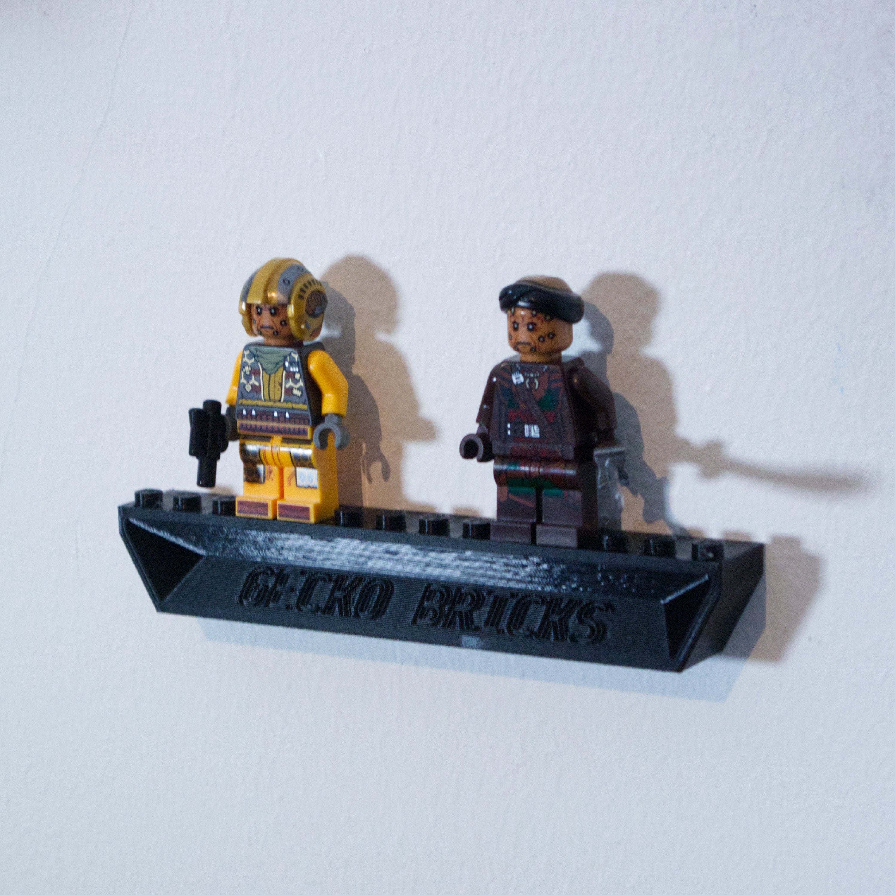 - Innehåller en separat hållare för minifigurer som monteras med hjälp av 3M Command Strips.