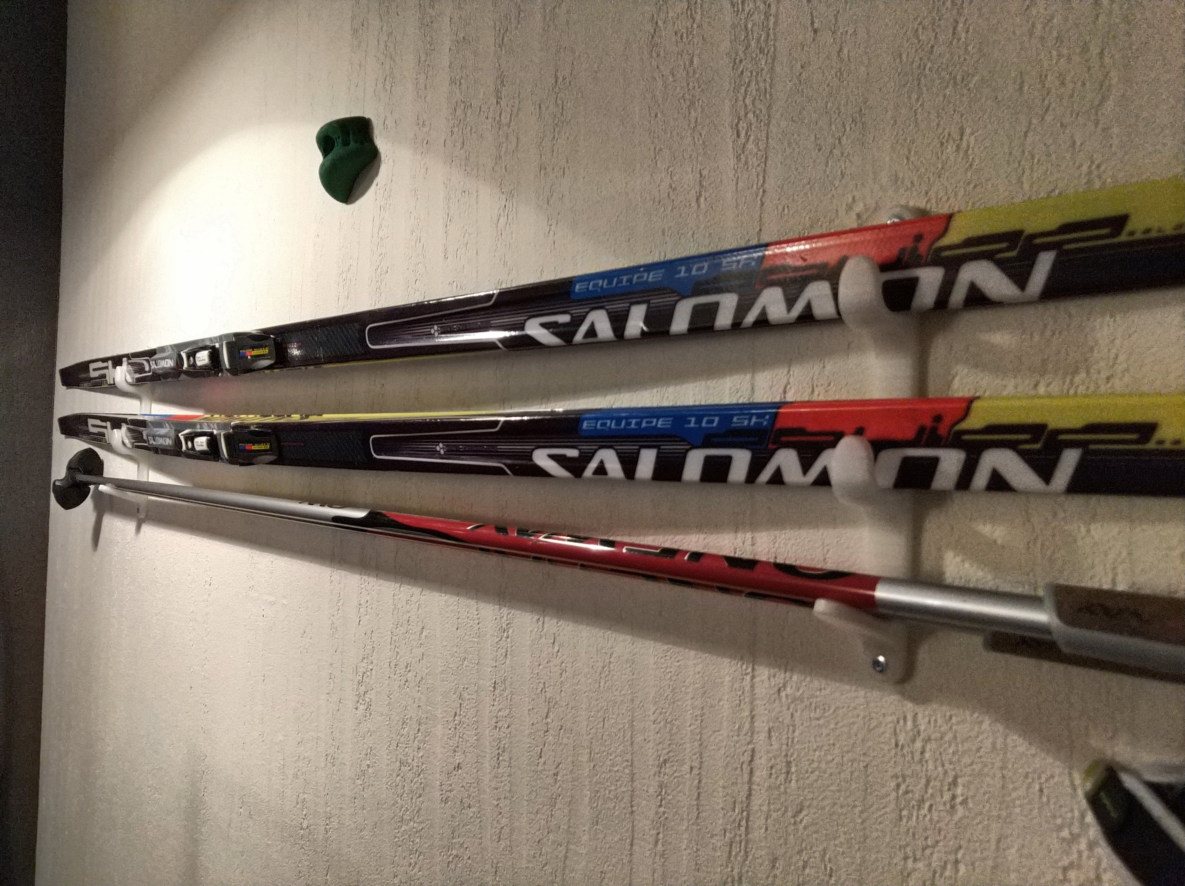 Detta är ett väggfäste för skidor och stavar. Det har noggrant utformats för att säkerställa att dina skidor och stavar förvaras säkert när de inte används, vilket bidrar till att skapa mer utrymme i ditt lager eller garage. Hållaren är enkel att installera och ger dig snabb och enkel åtkomst till din utrustning.