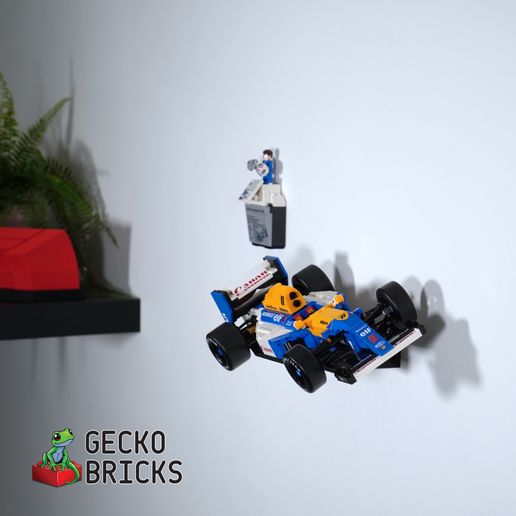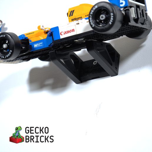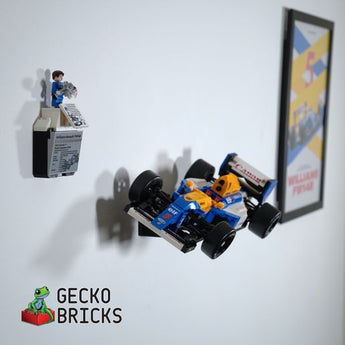 Få upp din Williams FW14B på väggen med detta smarta väggfäste. Fästet låter dig välja mellan en sned eller vertikal presentation av racerbilen. Det är enkelt att montera och demontera modellen, och setet innehåller även hållare för den medföljande podiet och informationskortet.