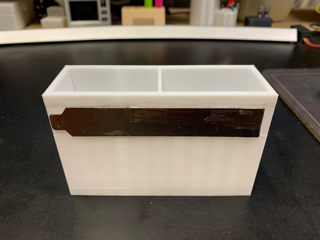 Denna verktygslåda är utformad för att ge en organiserad förvaringslösning för dina små verktyg. Den fästs enkelt på en magnetisk verktygsskena, som de som ofta används i verkstäder eller vid 3D-skrivare, vilket säkerställer att dina mest använda verktyg finns inom räckhåll. Den är idealisk för förvaring av verktyg som insexnycklar, tänger eller till och med en skruvmejsel som du ofta använder när du arbetar. Med ett inbyggt urtag på baksidan monteras den i jämnhöjd med den magnetiska hållaren, vilket bidrar till en snygg och funktionell arbetsyta. Denna verktygslåda är ett praktiskt tillskott för att hålla dina verktyg organiserade och förbättra effektiviteten i ditt arbetsflöde.