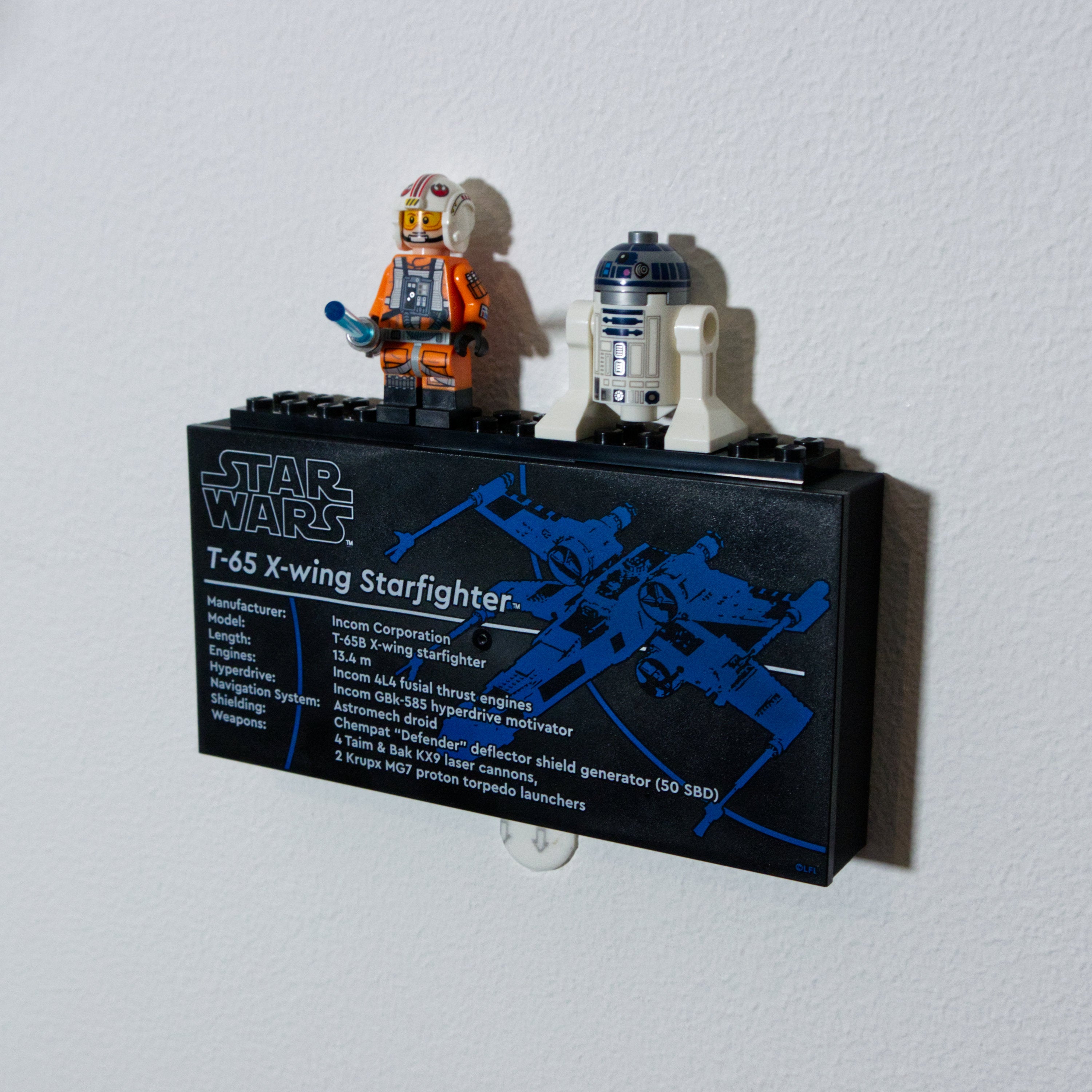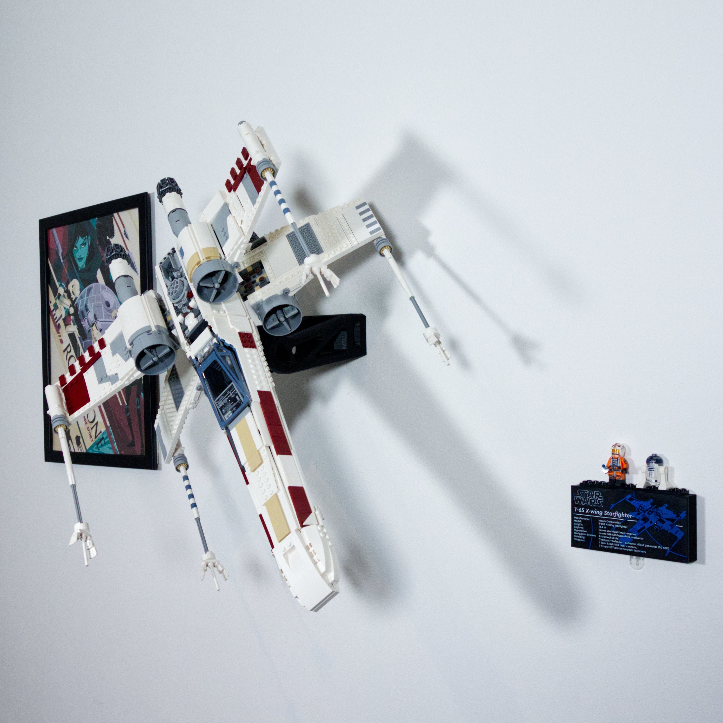 - Väggfäste designat för visning av Star Wars UCS X-Wing 75355.